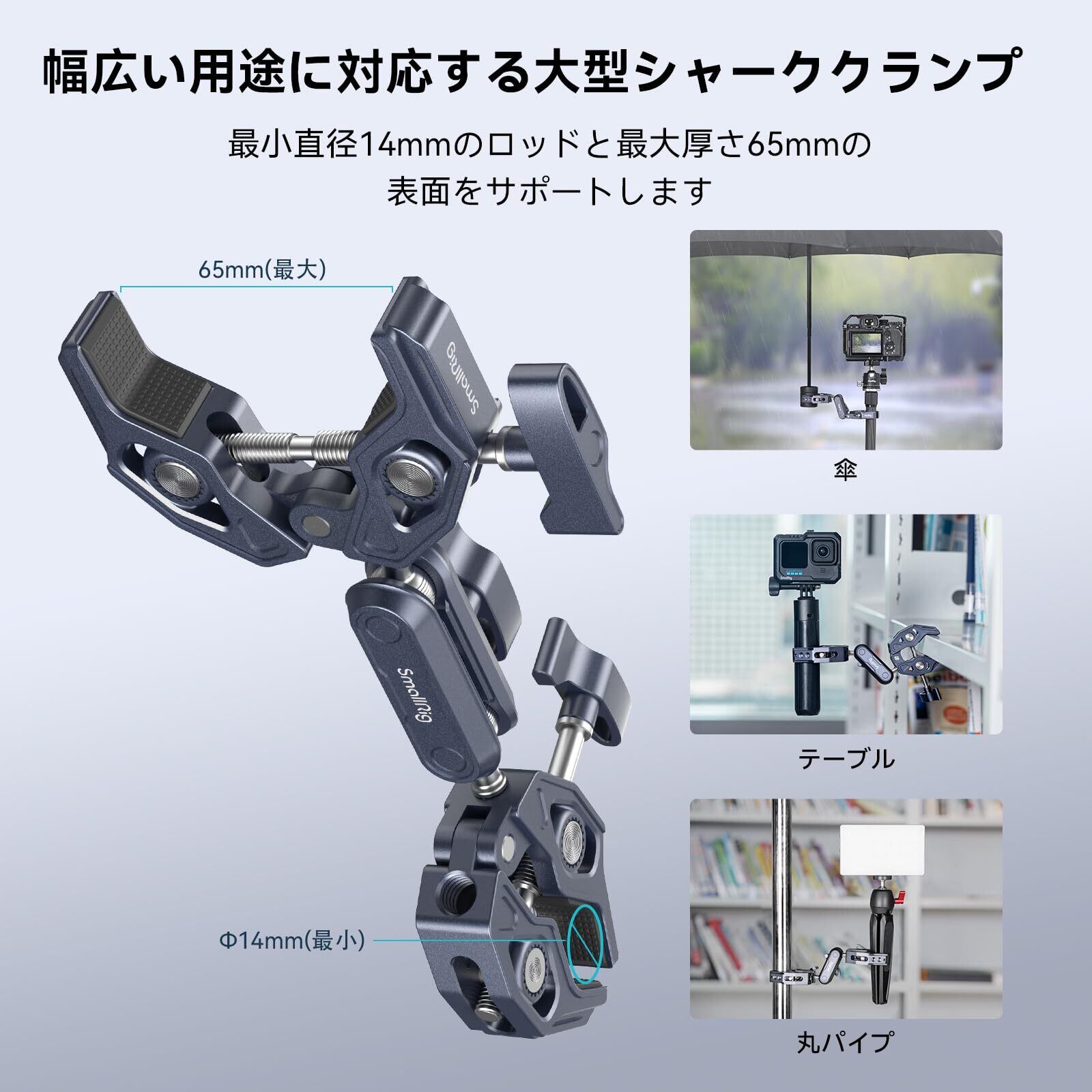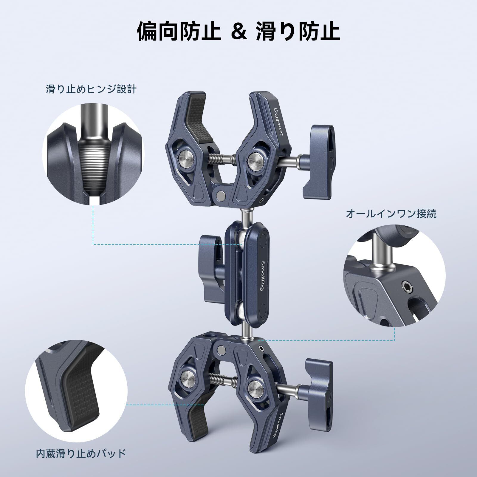 SmallRig スーパークランプ ボールヘッド マジックアーム 蟹バサミクランプ ダブルクランプ 緩み防止 360度回転 1/4''ネジ 偏向防止 雲台/撮影 LEDライト用 モニター外付け用 バイク ベストアングル 三脚 ウェブカメラに対応 -4103B