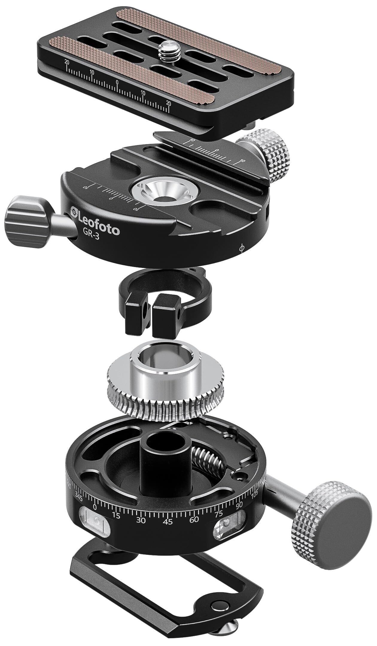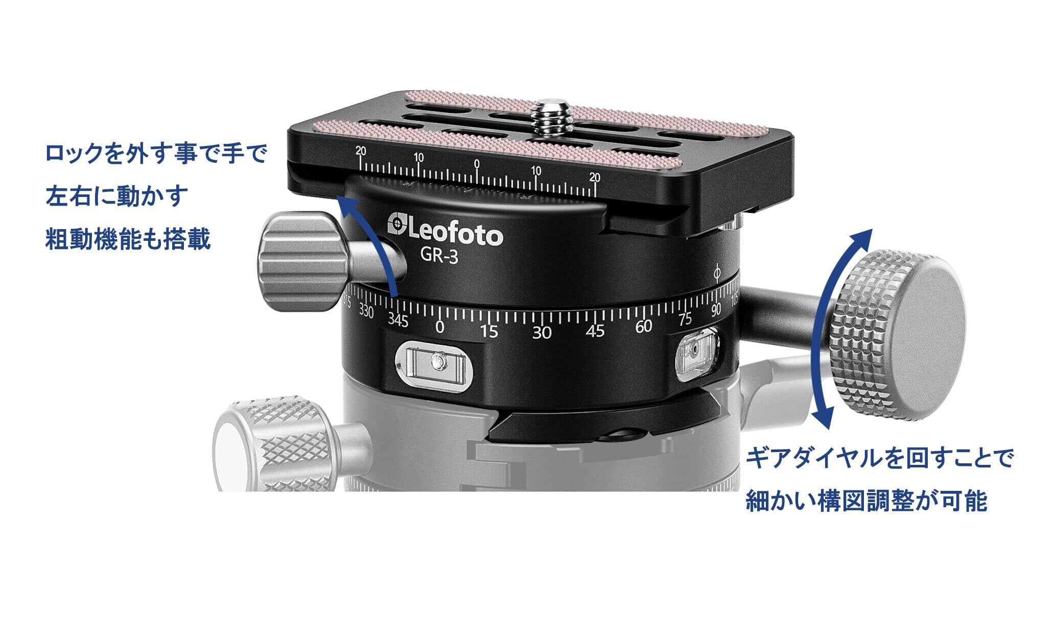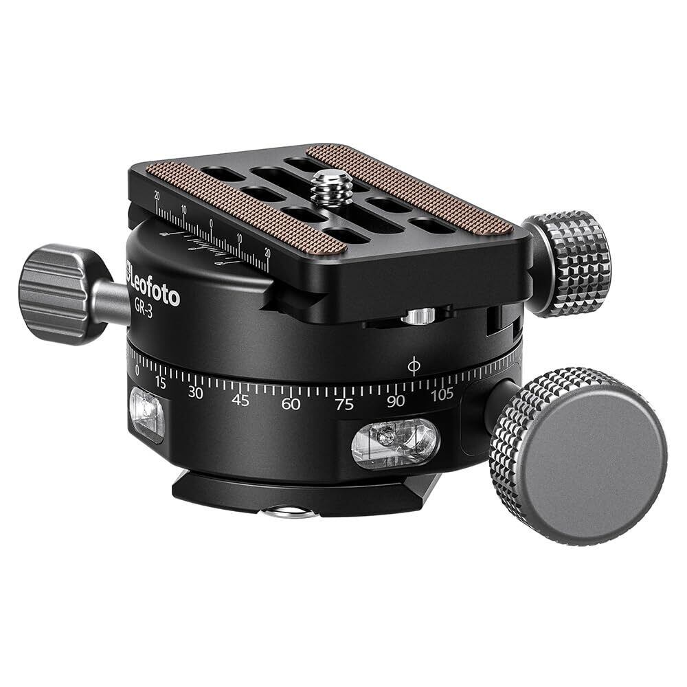 Leofoto GR-3 ギア式パノラマ雲台|粗動・微動調整対応|耐荷重20kg|アルカスイス互換|水準器2基搭載|3/8インチネジ対応 精密ギアパノラマ雲台 水準器搭載 耐荷重20kg 風景・建築撮影向け|クリックリリースプレートQP-70N付属
