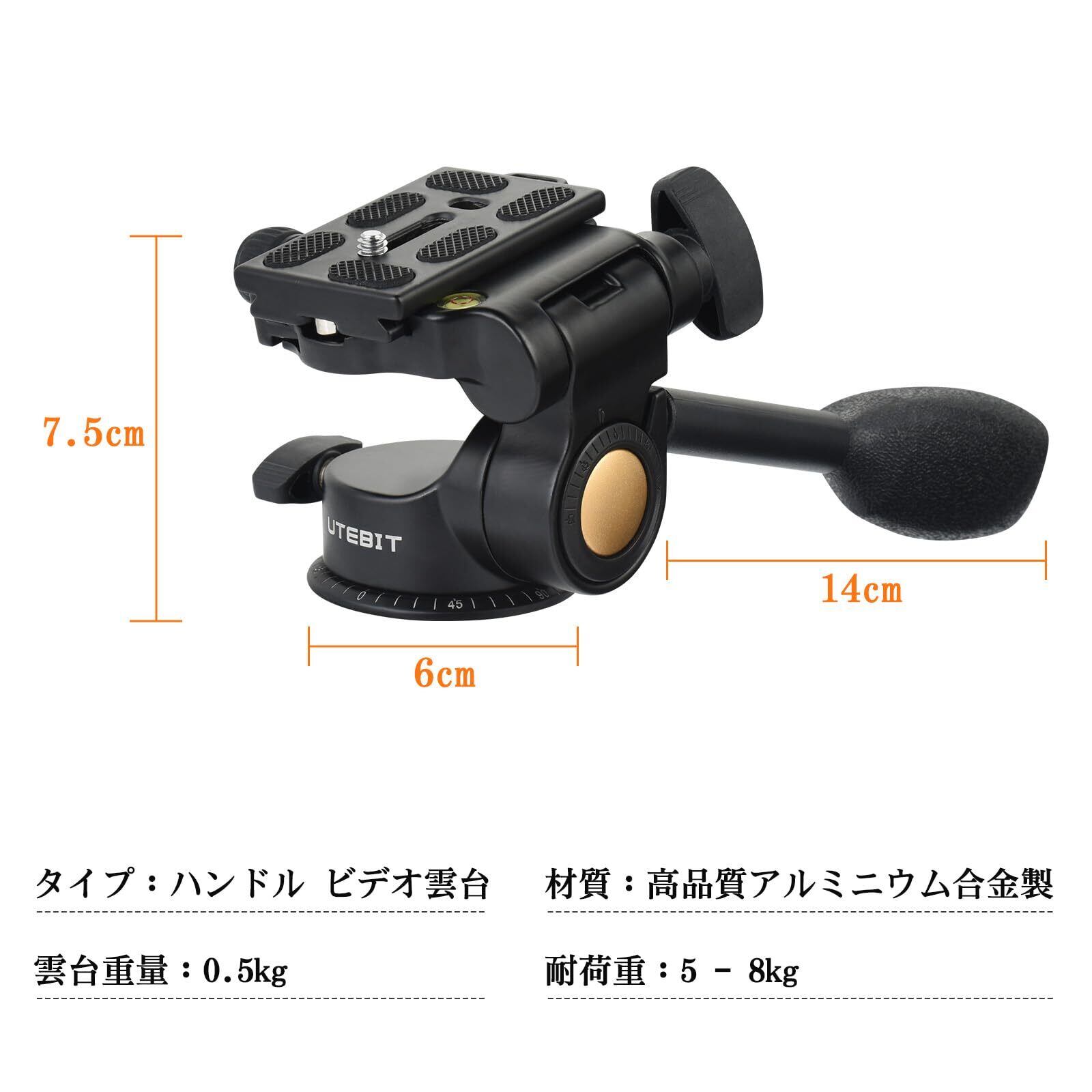 UTEBIT フルード ビデオ雲台 2WAY 自由雲台 アルカスイス 雲台 クイックリリースプレート付き カメラ雲台 360°回転可能 1/4"と3/8"ネジ付き 耐荷重5-8kg アルミニウム合金