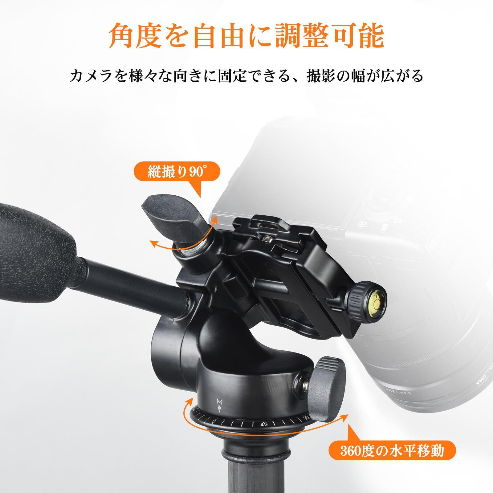 【360°パノラマ回転雲台と-80°から90°の傾き】流体ビデオヘッドは滑らかな動きと固定摩擦減衰を提供します。ハンドルを使用すると、三脚ヘッドは-80°から90°の傾きと360°回転してマルチアングル撮影が可能で、わずかな力で水平および垂直角度を簡単に調整できます。マルチアングル撮影によりスムーズな映像に対応できます。