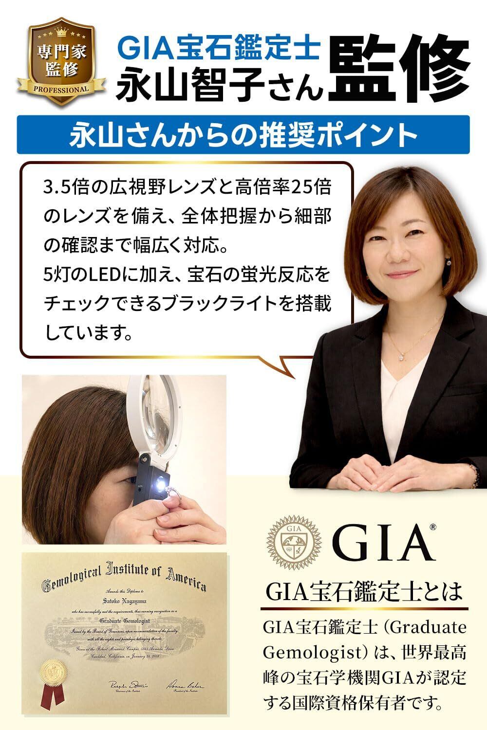 【GIA宝石鑑定士監修】“見えない”を、“はっきり”へ。Gemological Institute of America(GIA)宝石鑑定士・永山智子氏監修の高精度ルーペ。日常の細かな作業にも活かせる本格仕様です。細かい文字の確認、ネイルアートやアクセサリー作り、裁縫、新聞や辞書の小さな文字、図面や設計書のチェック、プラモデルや模型製作、彫刻などの繊細な作業、さらには検査・点検業務まで幅広く対応。肉眼では見えにくい細部をくっきりと映し出し、作業効率と仕上がりの精度を高めます。誕生日や敬老の日のプレゼントとしても喜ばれる、実用性と品質を兼ね備えた一台。手にした瞬間から、“見る力”が変わります。