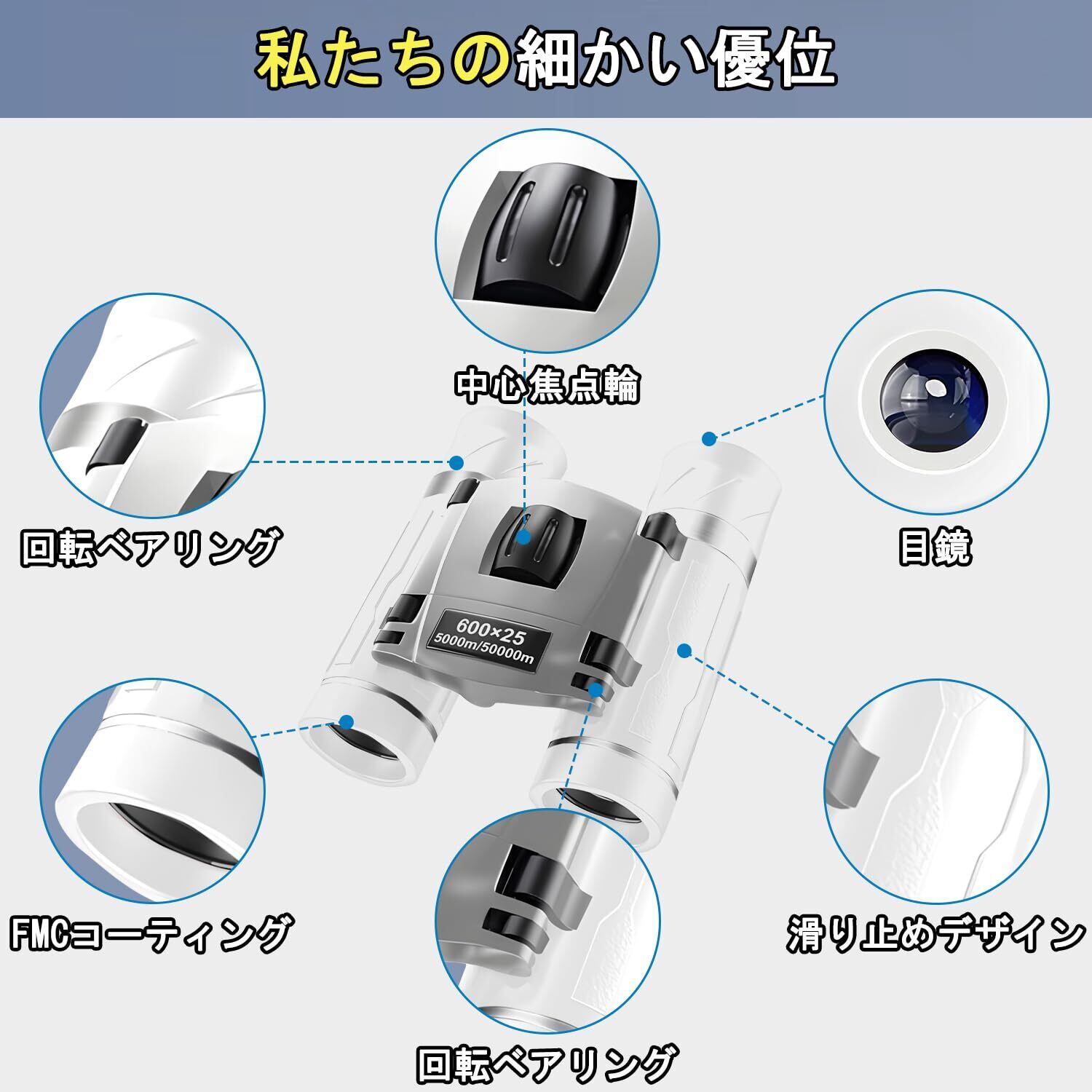 双眼鏡 ライブ用 オペラグラスディテールを明瞭に捉えます 生活防水 子供プレゼント/女性適用 ライブ/オペラ/野鳥観察/登山/アウトドア/花火を観賞する/旅行 ネックストラップ 収納バッグ付き 日本語説明書(ホワイト)