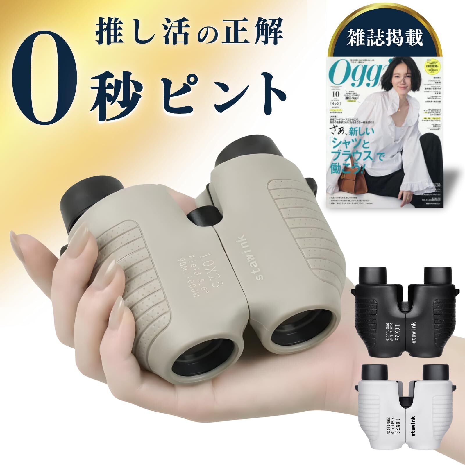 【10倍高倍率×25mm口径|アリーナ後方でもくっきり】 10倍の高倍率で、ステージをより近くに。 25mmの対物レンズで明るさもしっかり確保。 ・ドーム後方席 ・スタンド席 ・ 2階・3階席 遠くても表情までクリアに見えます。