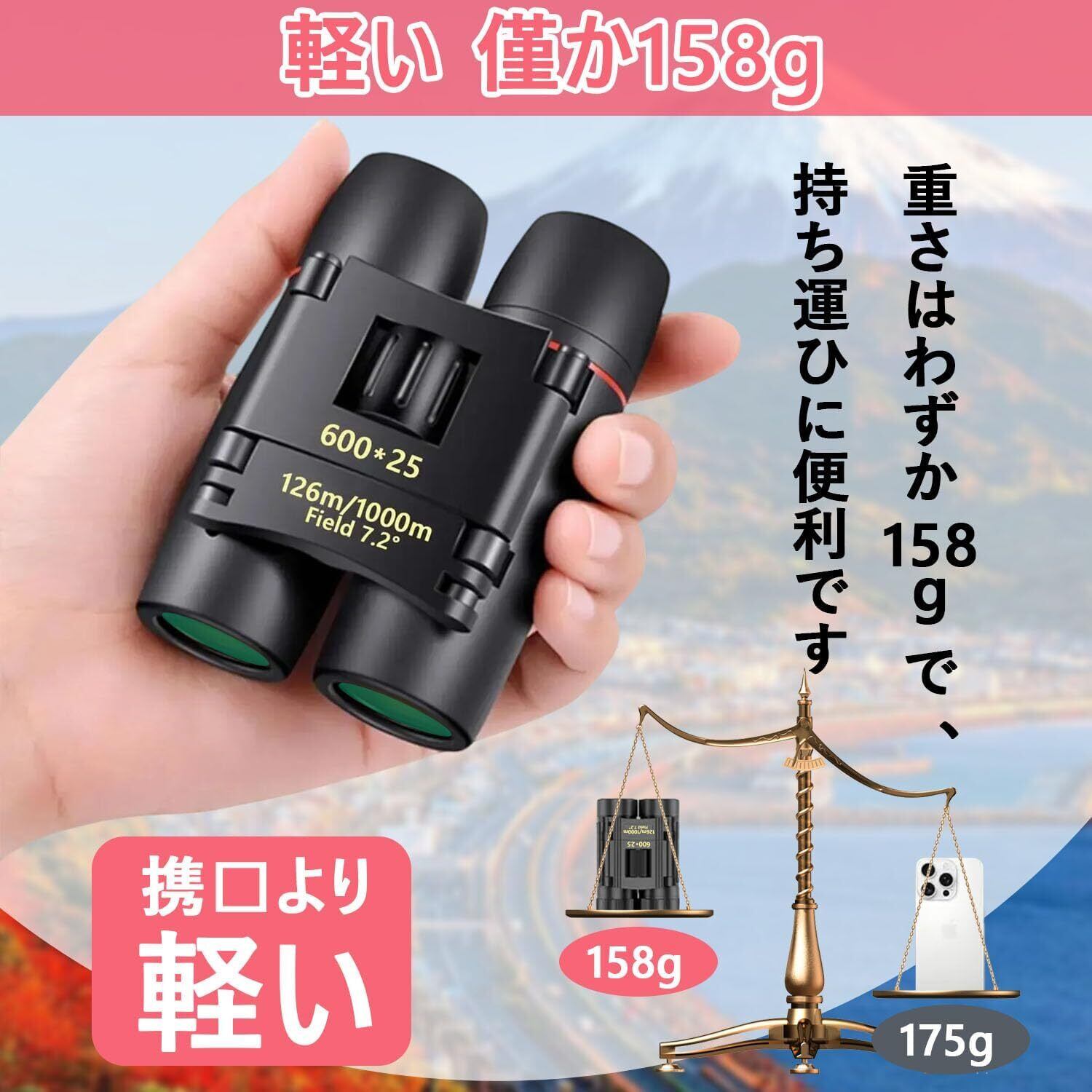 双眼鏡 ライブ用 ドーム&超軽量158gでコンパクト:オペラグラスは片手で持ちやすいコンパクトなデザインで、本体重量が158g、手持ちはiPhone16より軽くて 。長時間使用しても疲れません。コンパクトでカバンや首掛けて持ち歩いても邪魔になりません。折りたたむと手のひらサイズになり、バッグに楽々収納できます。お子様や女性に最適。コンサートやスポーツ観戦、ライブ、オペラ、観劇、野鳥観察などに最適です。
