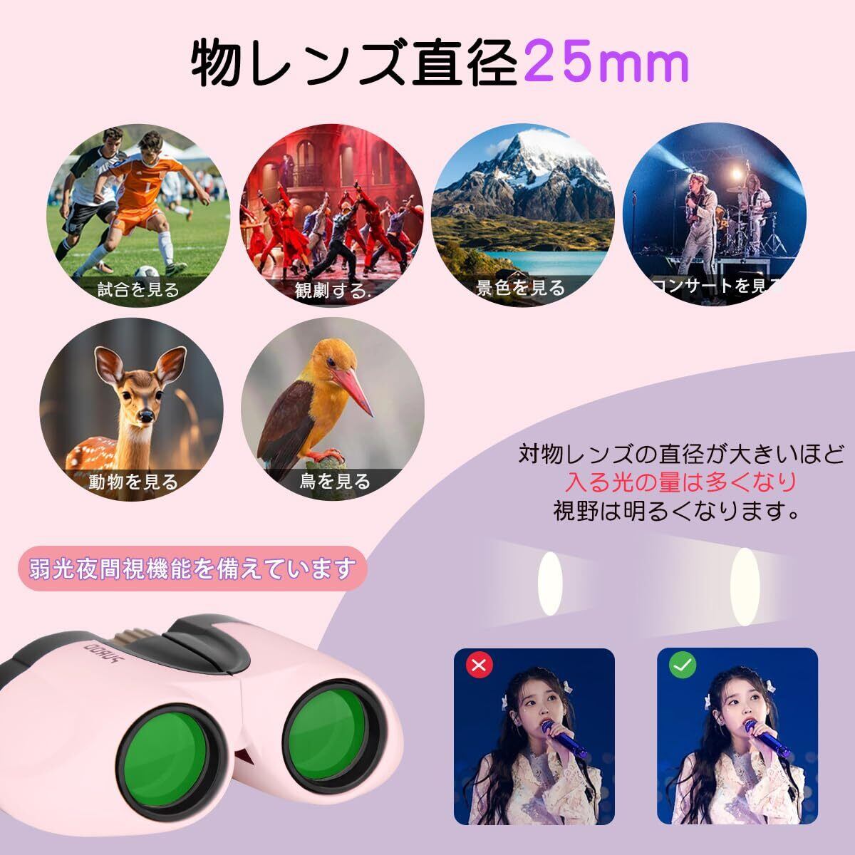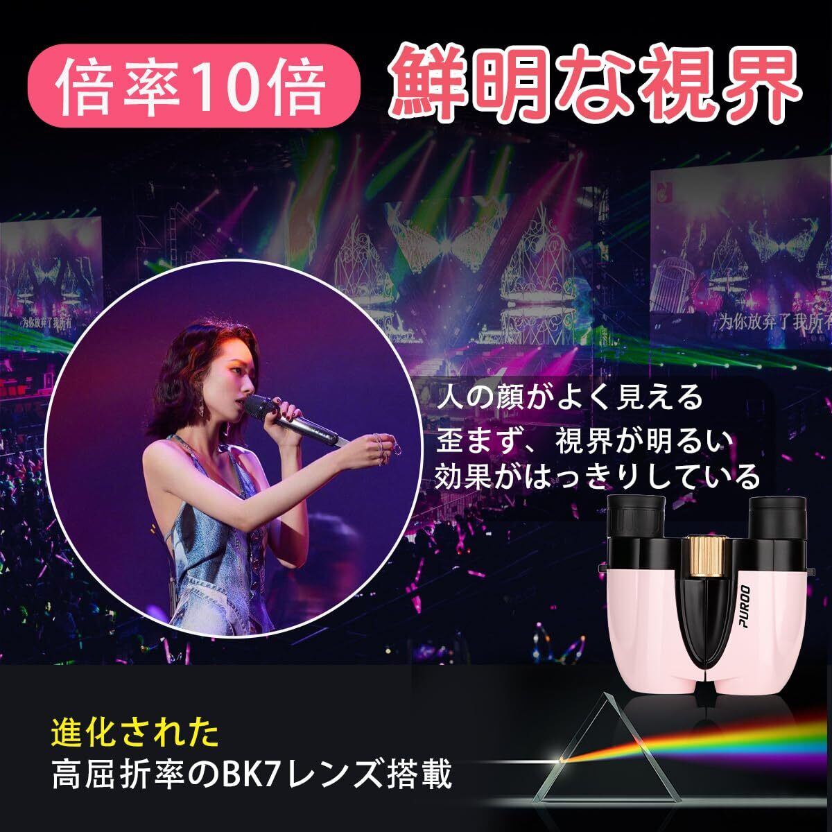 PUROO 双眼鏡 ライブ用 コンサート ドーム スポーツ観戦 観劇 10倍 高倍率 軽量 コンパクト オペラグラス 推し活 レディース 小型 ピンク