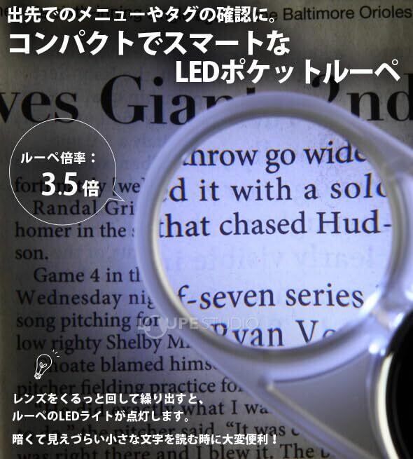 虫眼鏡 ルーペ LEDライト付き スイングルーペ 無地 3.5倍 35mm スライドルーペ 黒