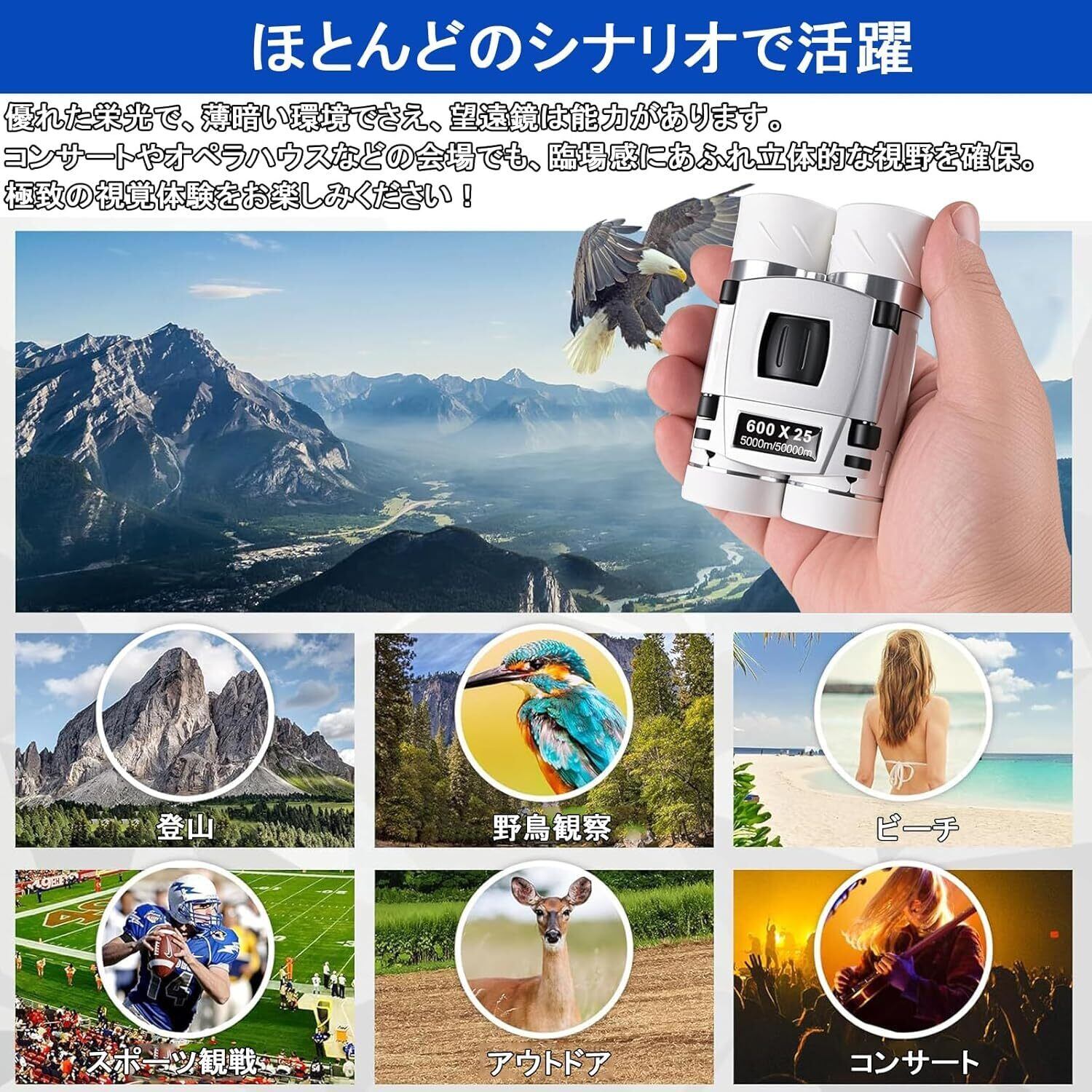 2025業界新開発の双眼鏡&倍率20倍:双眼鏡持続的な改良と倍率限界の突破により、快適な視認性と最高の体験を提供するために、最新の20倍超高倍率の双眼鏡が誕生しました。6.5°の超広視野、500m先の人を裸眼で10m先から見るのと同じ大きさで見えるという事。ターゲットを見つけてキャプチャするのが簡単になり。 これからは臨場感も感動も見逃しません。