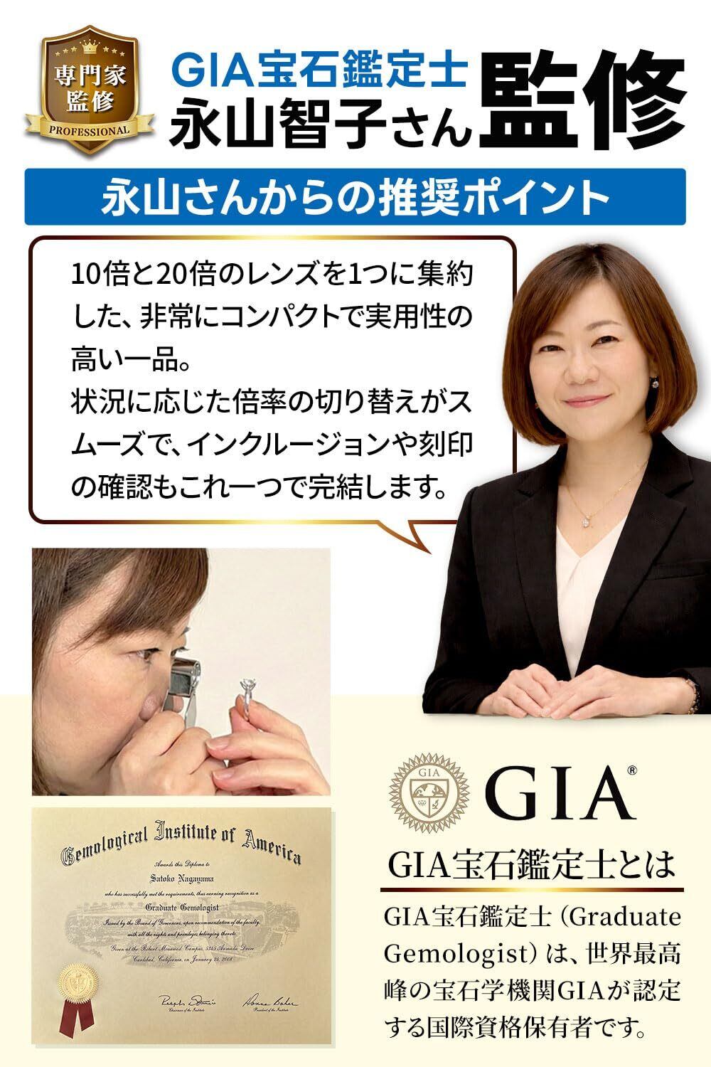 【GIA宝石鑑定士監修】10倍・20倍のレンズを1台に集約したコンパクト設計により、状況に応じたスムーズな倍率切り替えでインクルージョンや刻印確認までこれ一つで完結できる実用性を実現!さらに回転収納式レンズを堅牢なケースが守る安心構造によって持ち運びにも優れています。鑑定レベルの精密な視界を場所を選ばず確保できる、携帯性と機能性を高次元で両立した“本当に頼れる”ルーペです。