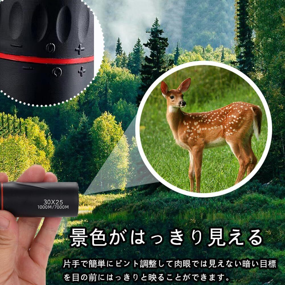 【景色がはっきり見える】コーティング光学レンズを採用、透過率を高めて、コーティングで大部分の波長の反射をおさえて景色がくっきり見えます。片手で簡単にピント調整して肉眼では見えない暗い目標を目の前にはっきりと映ることができます。驚くほどの明瞭な視界を目に写します。