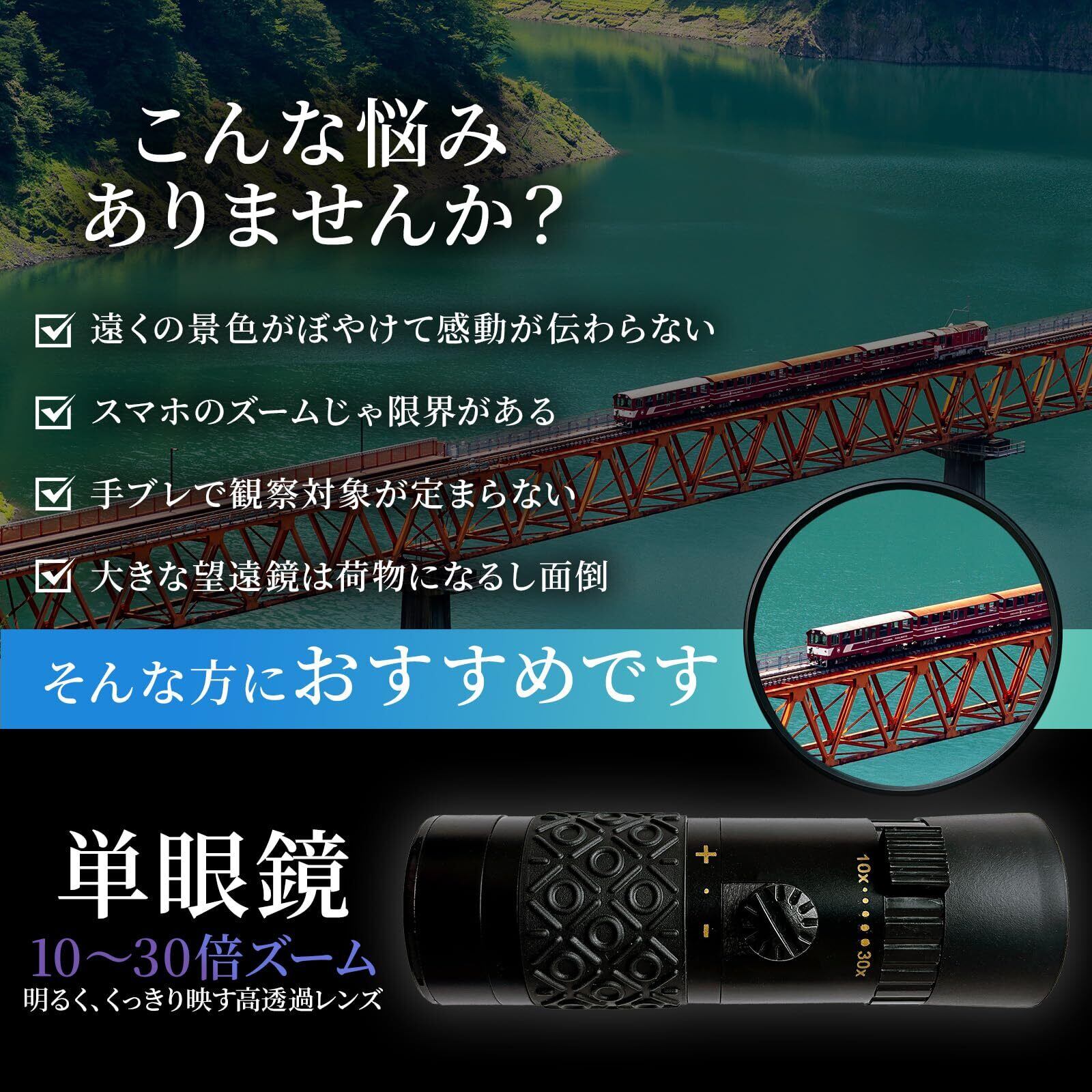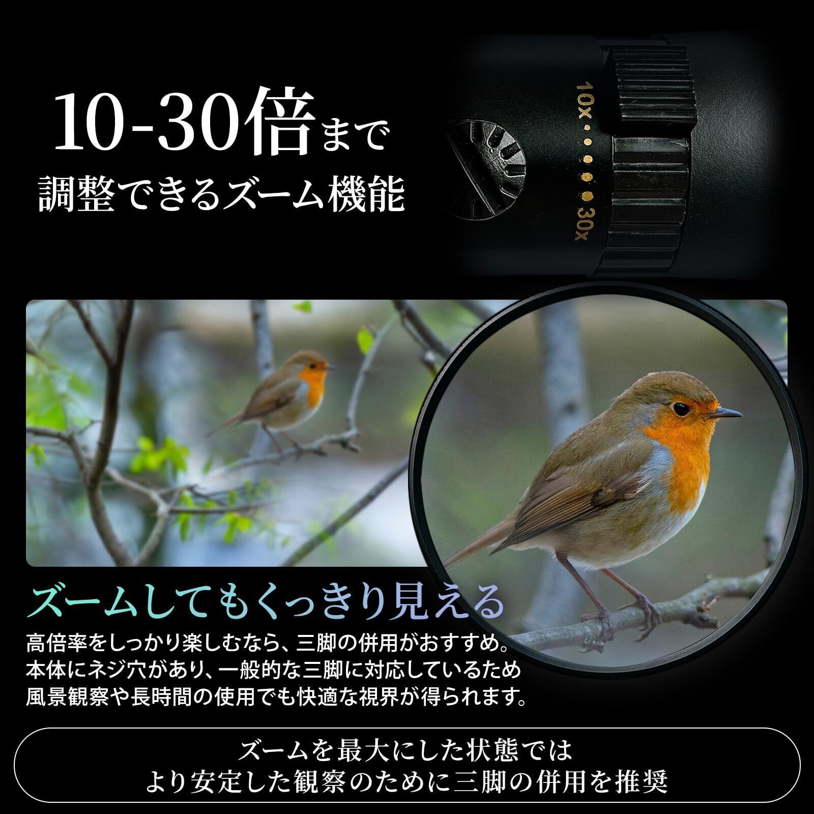 単眼鏡 高倍率 BAK4+FMCレンズ搭載 10-30倍 110g 専用ケース ストラップ付 小型 旅行 ライブ コンサート スポーツ観戦用 90日 (ブラック)