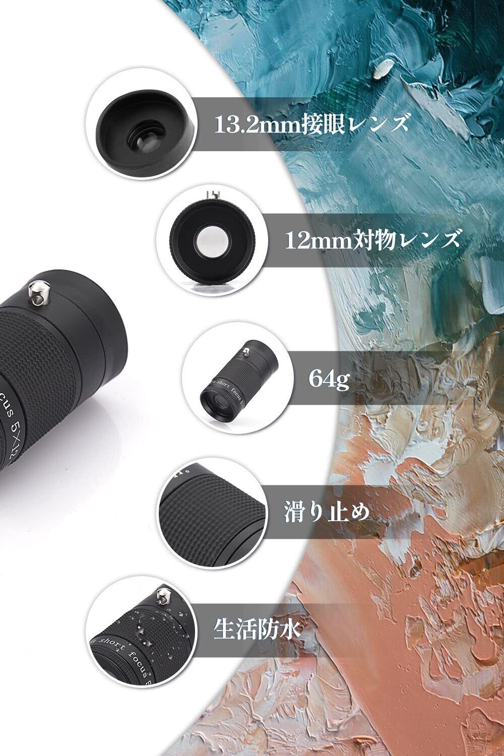 【奥深い芸術鑑賞の世界】5倍の美術館用単眼鏡は適度に広い範囲を同時に見渡すことができる倍率であるため、手ブレを起こしにくく対象が視野から外れることなく安定した鑑賞が可能。特に初心者の方にお勧めだ。また適度に拡大されるため、肉眼では観察できない美術品の細部までを鑑賞できる。また細部ではなく、普通の単眼鏡にとって、遠くの目標物を拡大できます。一つ単眼鏡は二つ機会があり、用途がもっと広くなります。