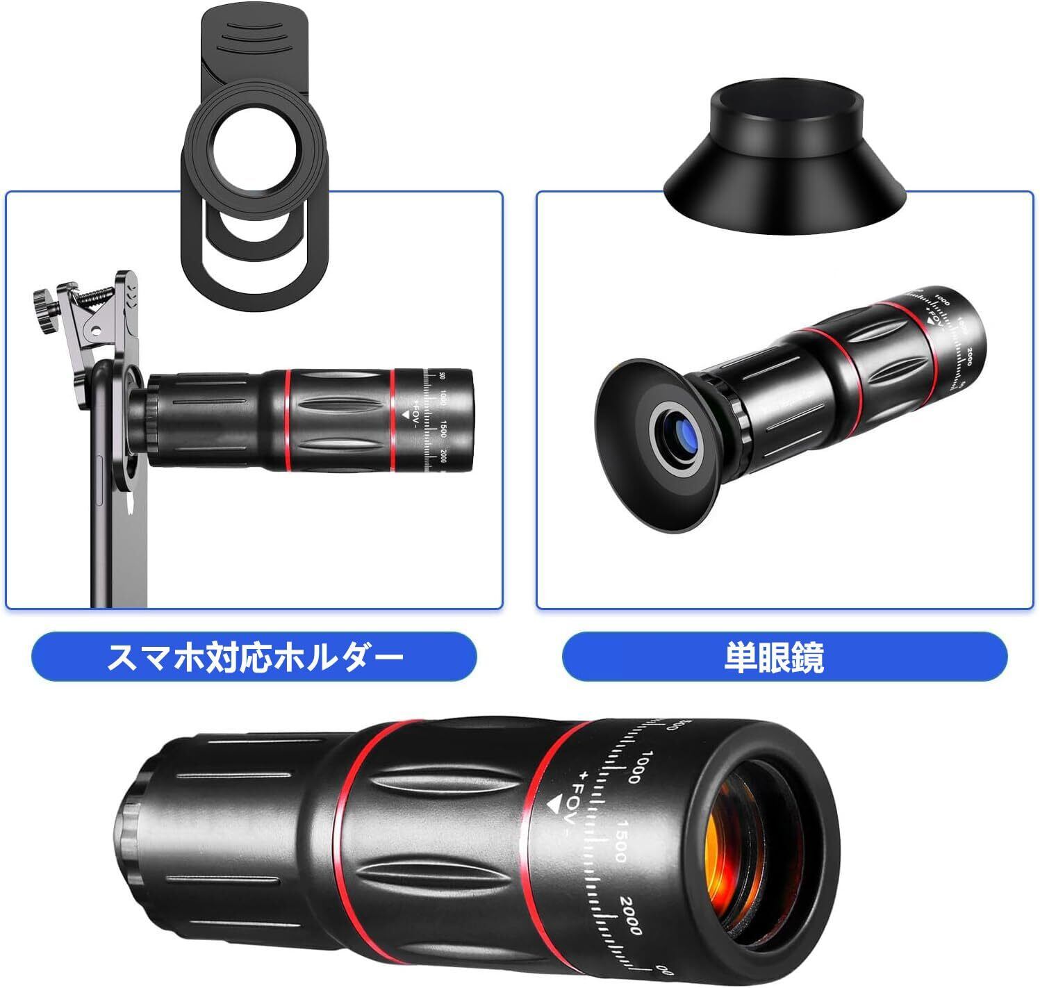単眼鏡 望遠鏡 スマホ望遠鏡 64x25 レンズ 望遠鏡 高倍率20倍 単眼望遠鏡 小型 スマホレンズ 片手操作 簡単装着 鮮明な写真撮る スタースコープ 単眼きょう 高級Bak4プリズム 高透過率 iPhone 広角レンズ バードウォッチング/野球観戦/花見/プレゼント
