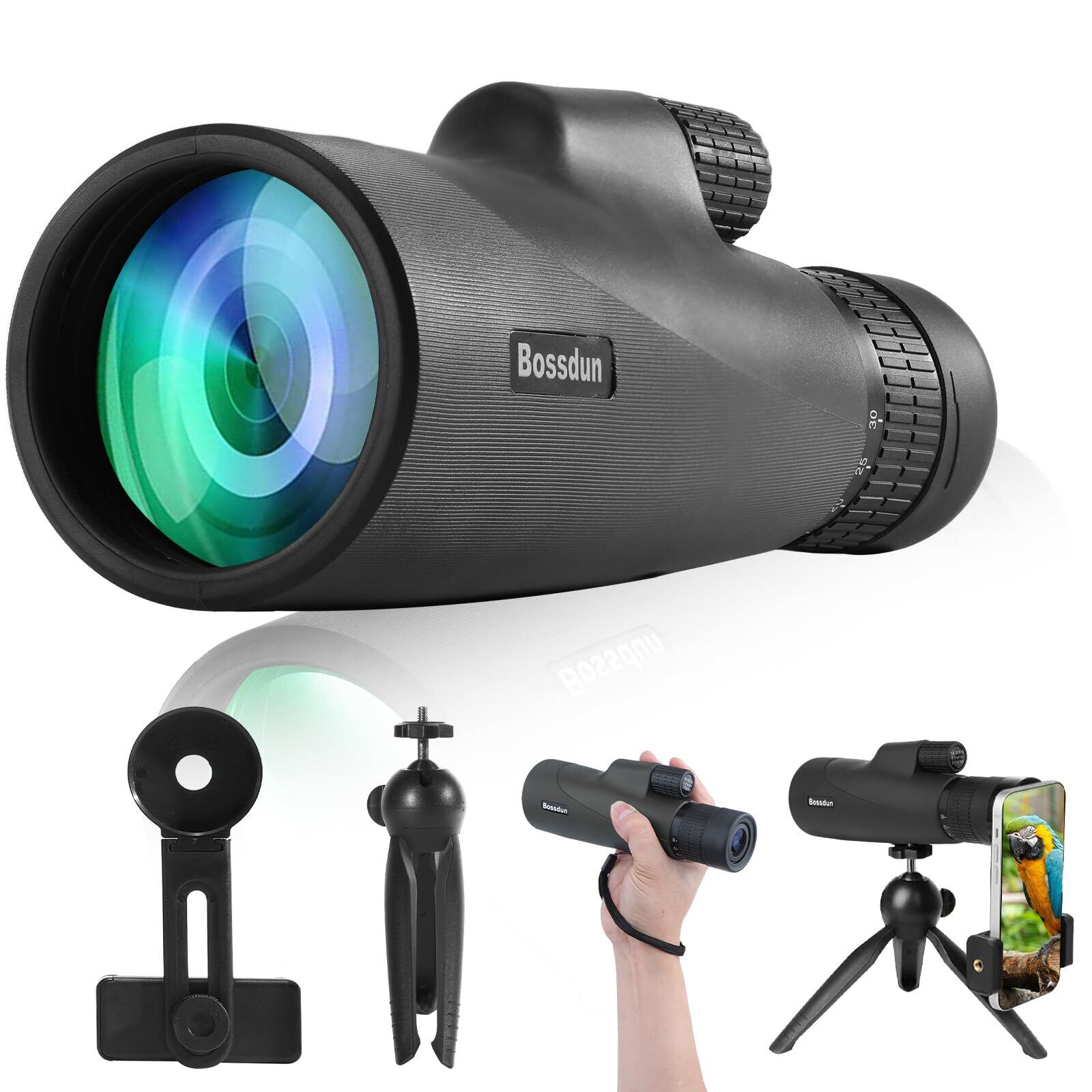 BOSSDUN 10-30x50ズームHD単眼鏡、キャリングバッグとユニバーサルスマートフォンアダプター付き