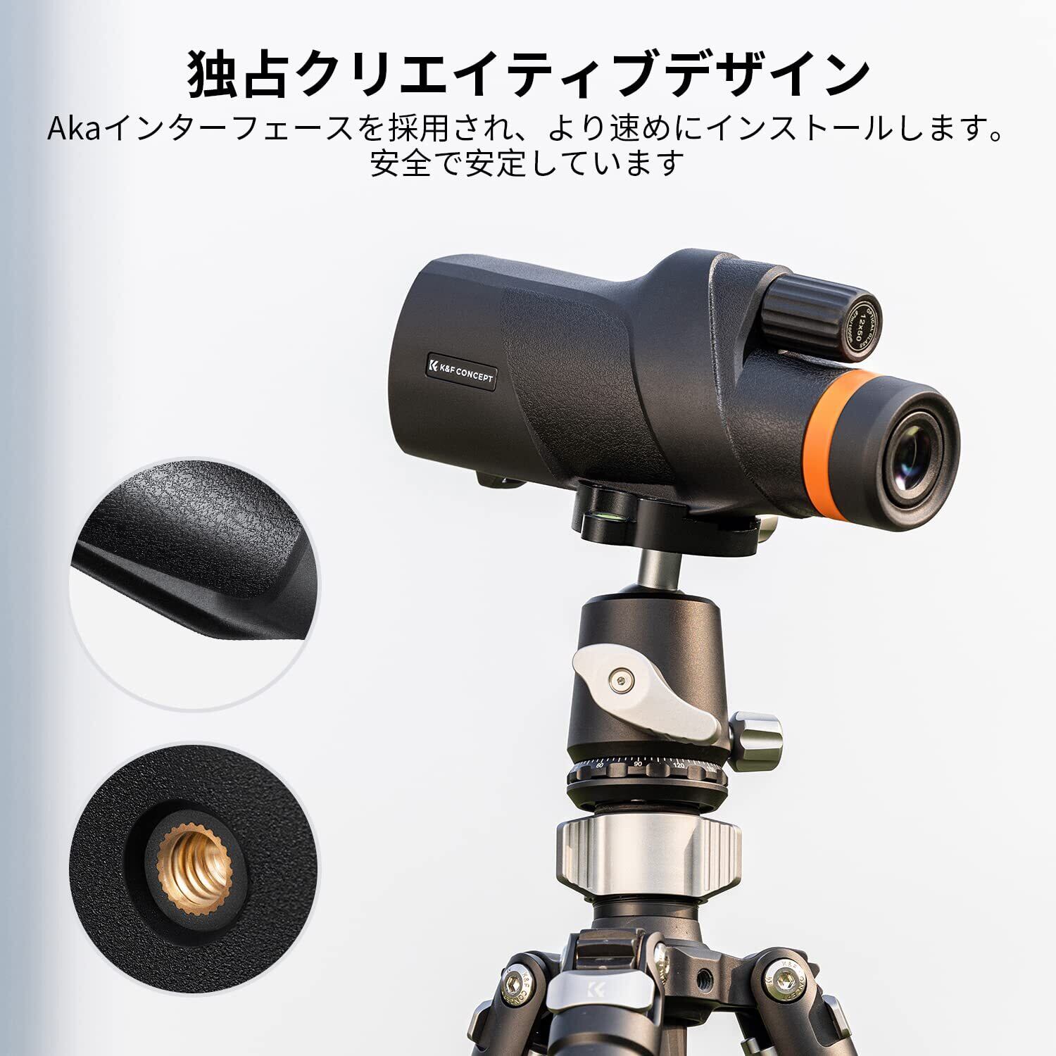 K&F Concept 単眼鏡 12倍 高倍率12*50 カメラ三脚に接続インターフェース ウルトラクリア望遠鏡レンズ メガネ対応 高級プリズムBak4 小型軽量 バードウォッチング多層コーティング加工 スタースコープ 防水霧 運動会/野鳥観察/山登り/コンサートなどに適用 収納バッグ付き ブラック