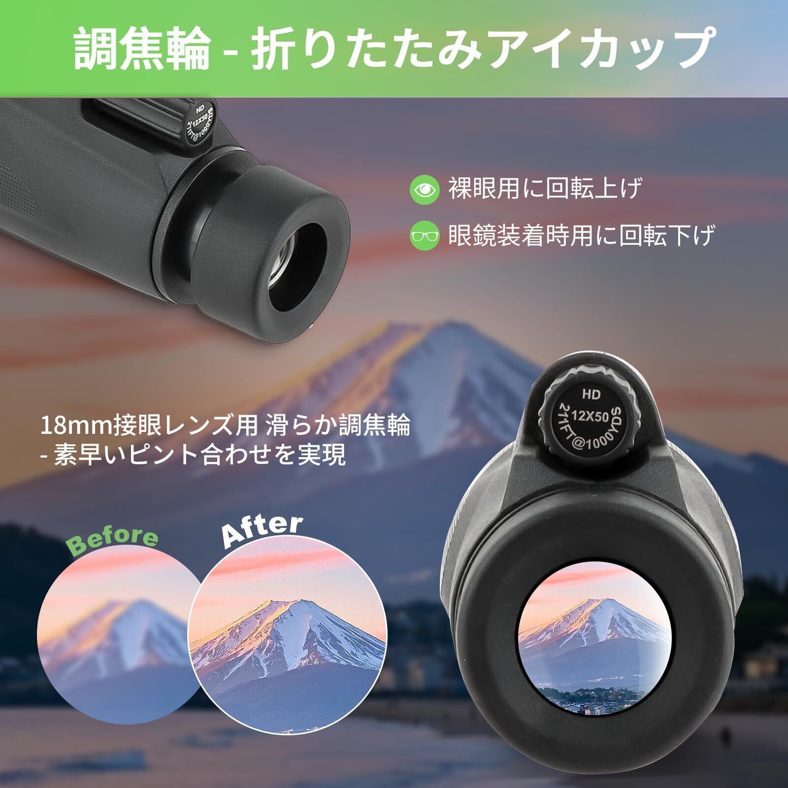 FOCUHUNTER 12x50単眼鏡 望遠鏡 高倍率 小型 片手操作 品質な視界 スタースコープ単眼望遠鏡 マルチコーティングレンズ ポータブル 高透過率 防水 耐衝撃性 耐久性高い望遠レンズ 軽量 防水霧 持ち運び便利 滑り止めゴムデザイン 単眼きょう バードウォッチング 運動会観戦 野球観戦 スポーツ 山登り 花火大会