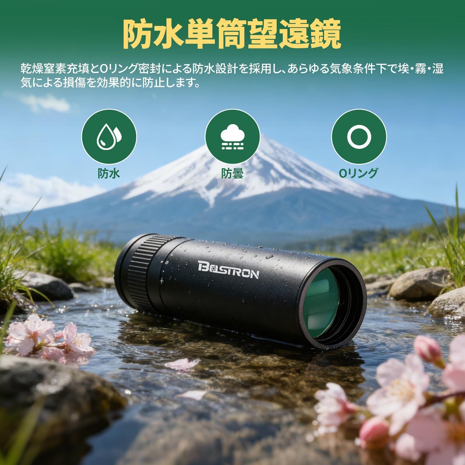 単眼鏡 8x32 高倍率 スマホ 対応 コンパクト 望遠鏡 IPX7完全防水 FMCマルチコート BK4プリズム スマホアダプター付属 収納袋付 日本語説明書付 オペラグラス バードウォッチング 狩猟 ハイキング スポーツ観戦 オペラ 芸術鑑賞 卒業式 運動会 キャンプ 野生生物観察に最適