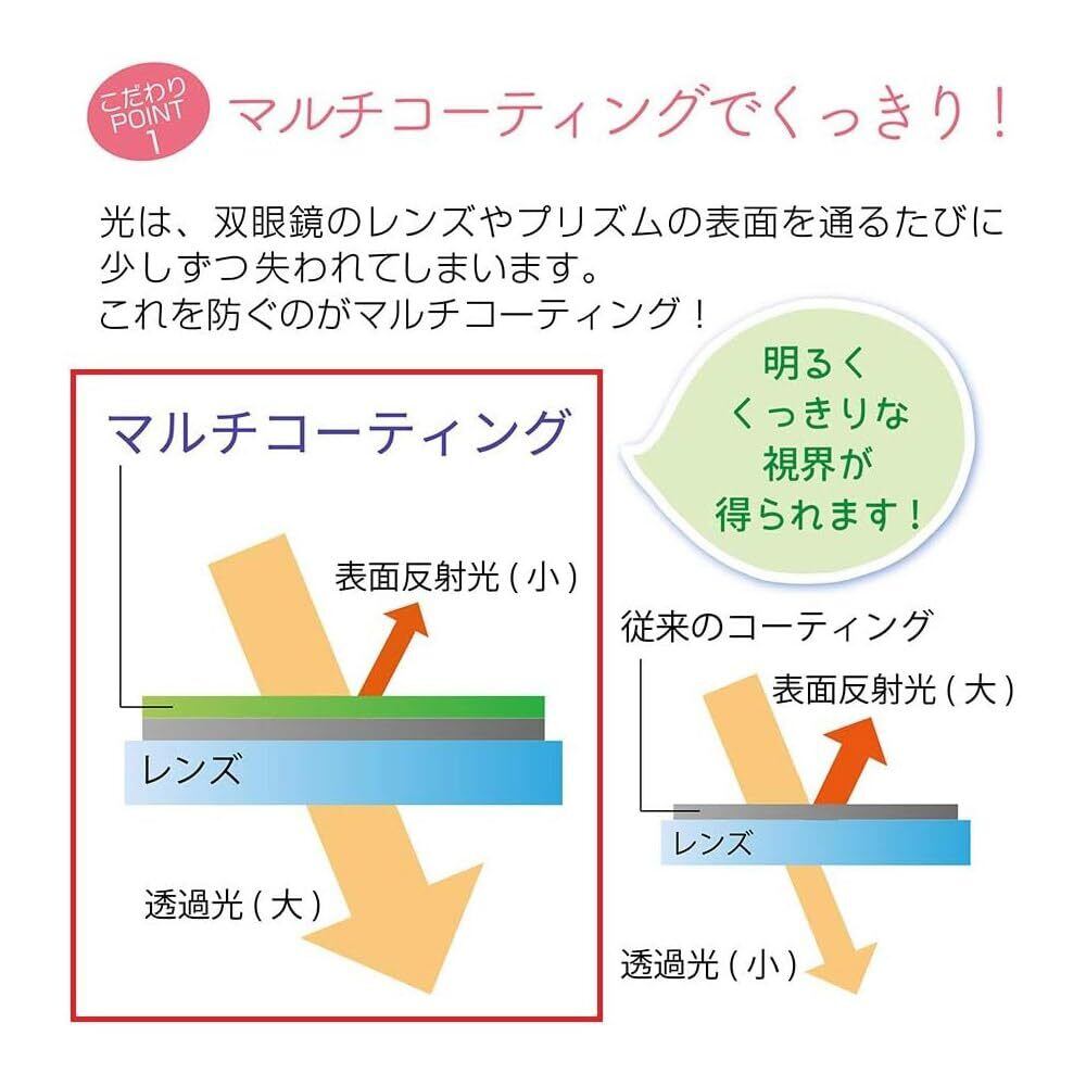 【高級機相当のスペックを搭載】フルマルチコーティング、高級プリズムBak4、非球面レンズ、ラバーコート。