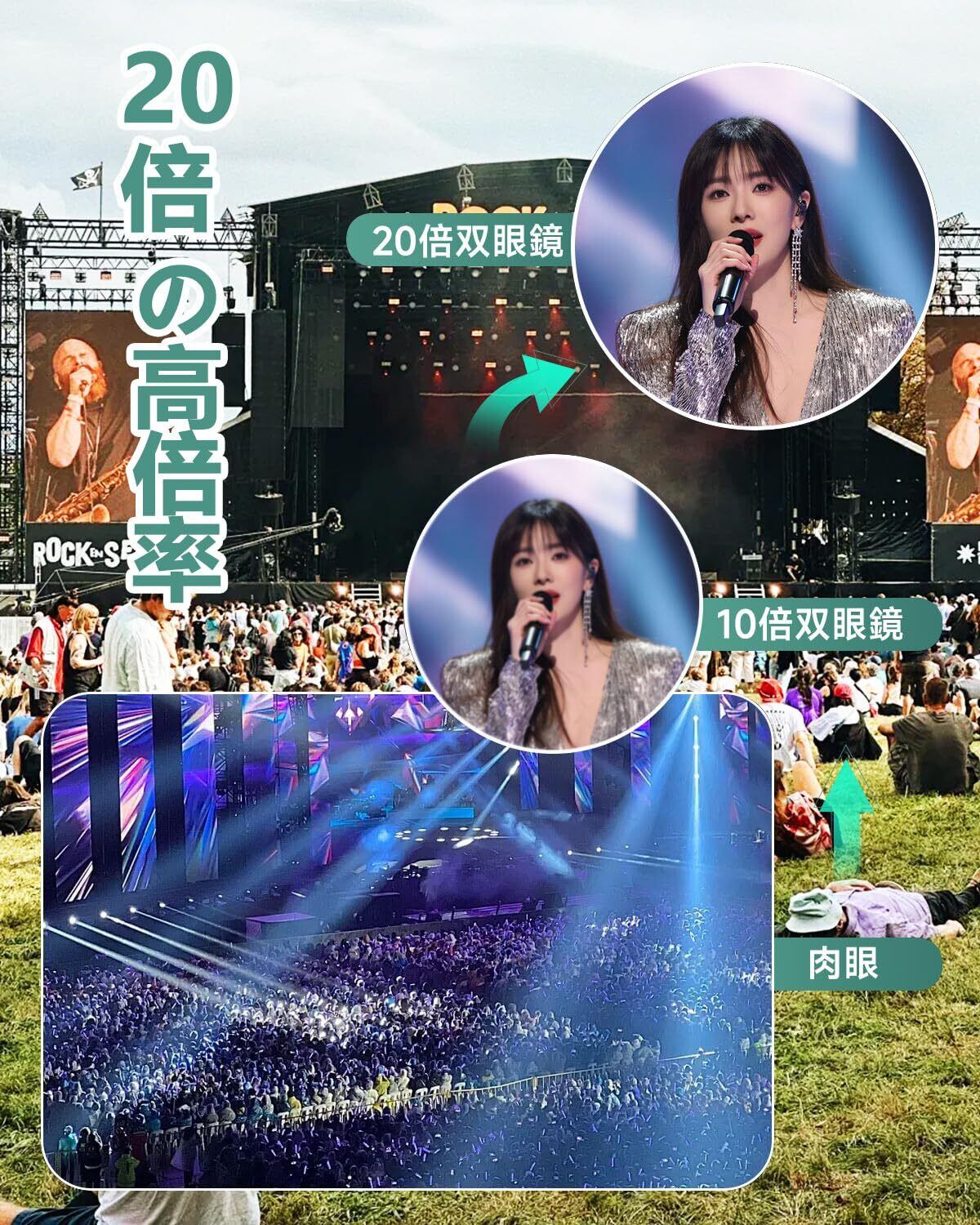 【20倍高倍率 & ライブ双眼鏡】双眼鏡は常に改良を重ね、倍率の限界を突破し続けています。高精度20倍ズームレンズを採用し、最大視認距離を500メートルまで延長しました。東京ドームの最後列からでも、アイドルの笑顔をクリアに捉え、臨場感あふれる感動を逃すことはありません。この双眼鏡が、あなたの願いを叶えます!
