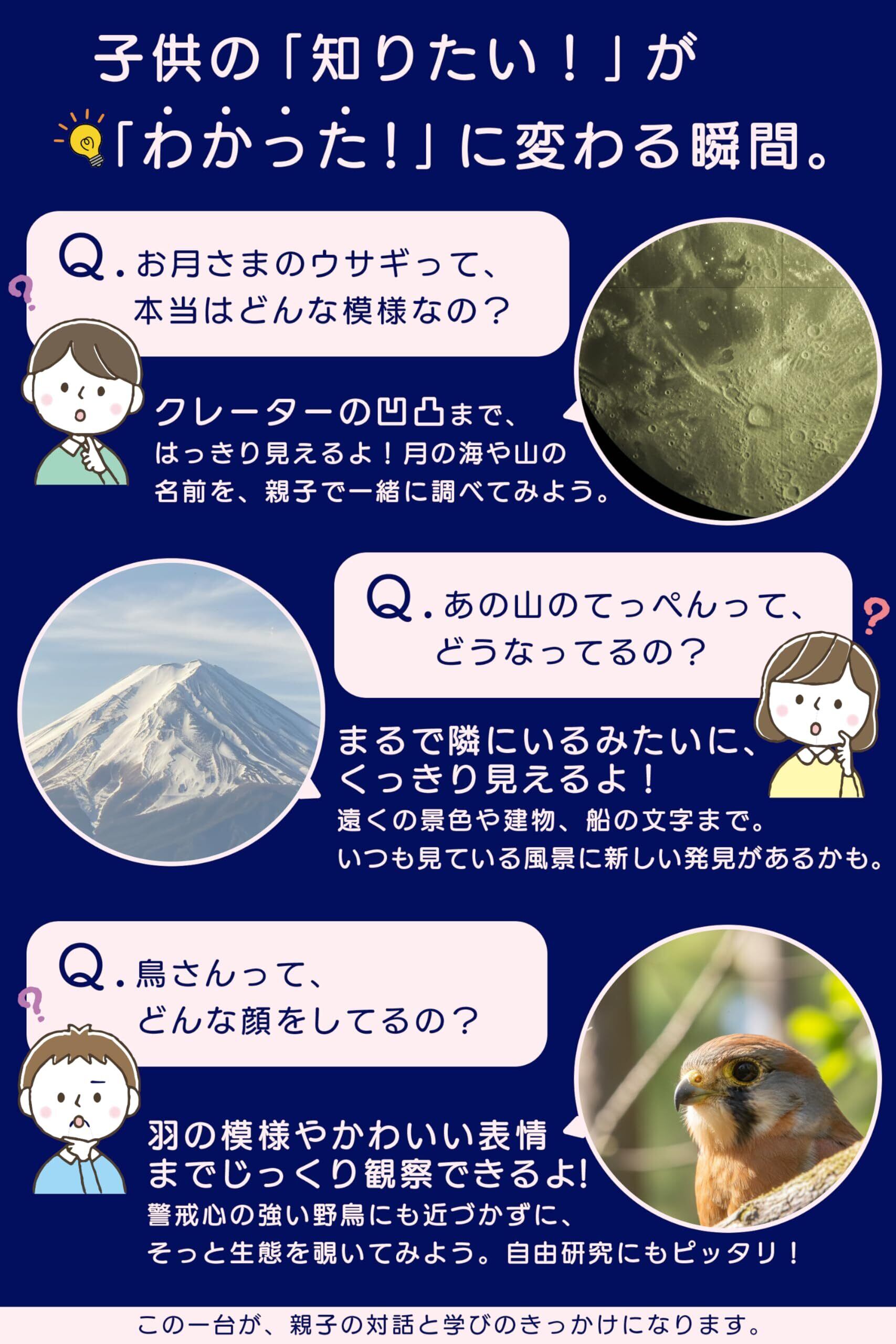 【多用途でプレゼントにも最適】月や星空観察だけでなく野鳥や風景観察にも対応。学習教材や自由研究、誕生日やクリスマスの贈り物にも喜ばれる望遠鏡。