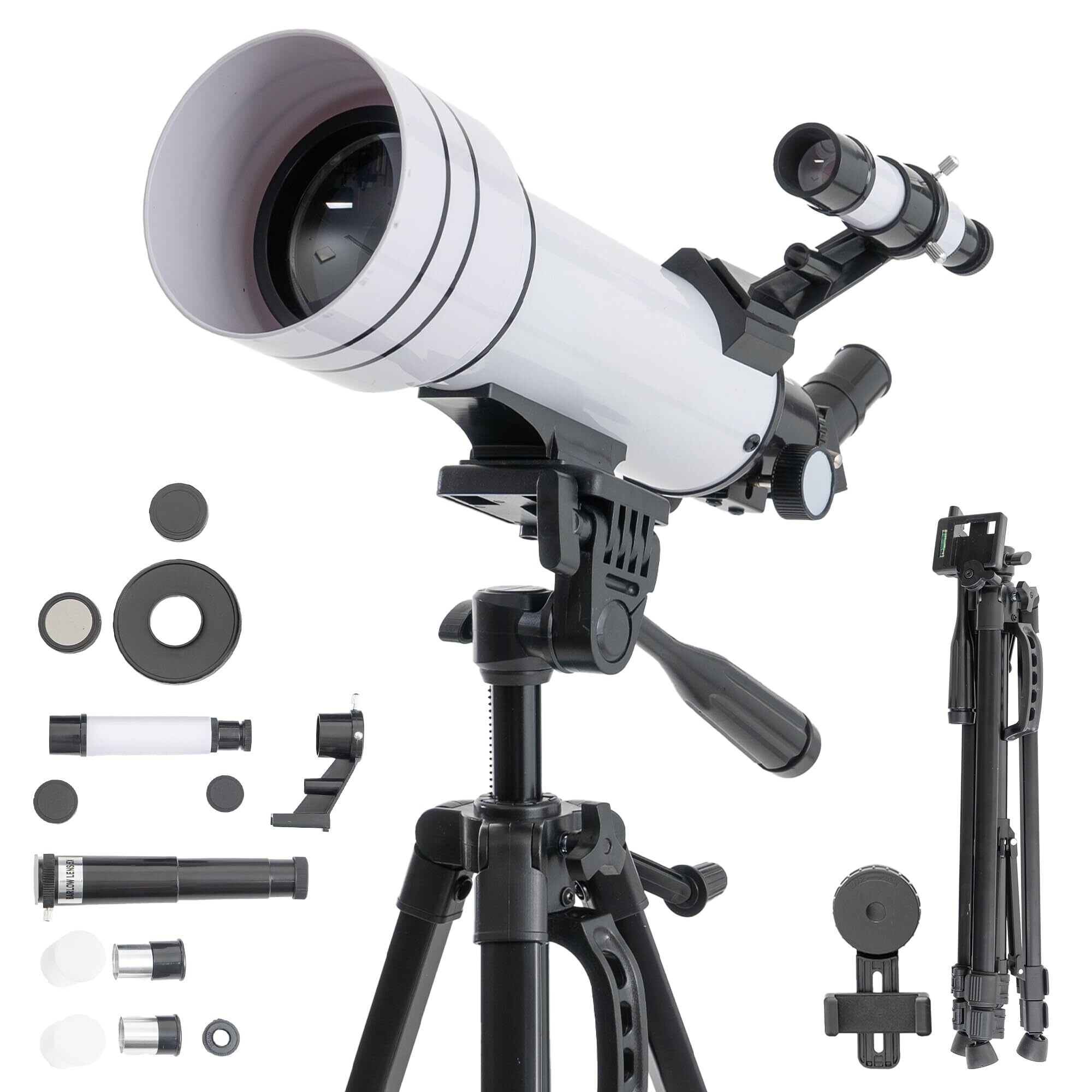 天体望遠鏡 子供 初心者 屈折式 焦点距離400mm 高倍率150倍 日本語説明書付き 天体観測 月 土星 星座 アウトドア キャンプ 自由研究 入学祝い プレゼント (ホワイト)