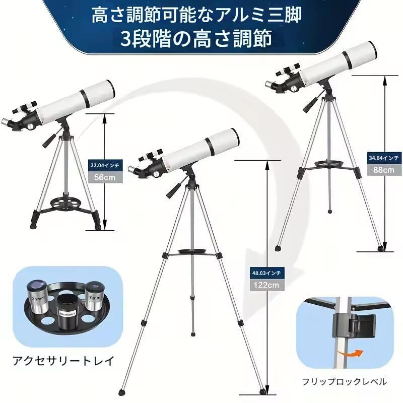 80600 プロフェッショナル 天体望遠鏡 180倍 単眼鏡 80MM 大口径 星空観察 バードウォッチング 月 星雲 望遠鏡 天体観測 赤道儀 接眼レンズ 対物レンズ ファインダー アイピース 架台 光学機器 星空観察 惑星観察 月面観測 天文学 反射望遠鏡 屈折望遠鏡 カセグレン 双眼鏡 天体撮影 星空撮影 日本語説明書付き