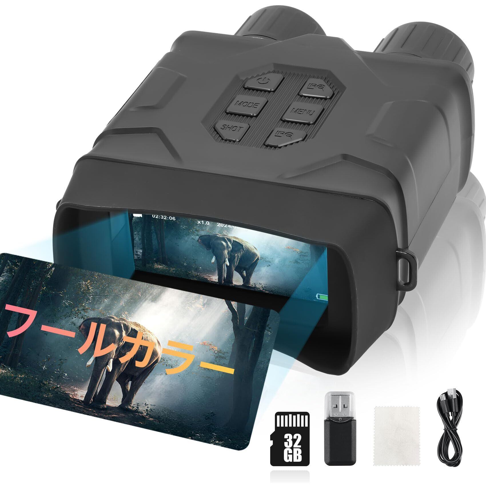暗視鏡 5K フルカラー ナイトビジョンカメラ 暗視カメラ 10倍デジタルズーム FHD 4インチスクリーン USB充電式 暗視鏡 双眼鏡 赤外線 コンパクト 監視 防犯 警備 セキュリティ 夜釣り 500mまで暗視撮影 暗視装置 32GBメモリーカード付き 日本語取扱説明書