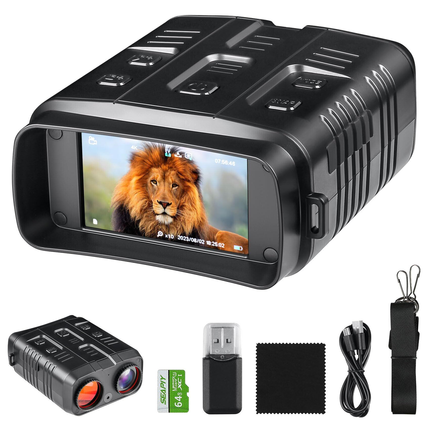 暗視鏡 4K画質 ナイトビジョンゴーグル 充電式 デジタルナイトビジョン 暗視ゴーグル 双眼鏡 成人用 10倍ズーム、FHD 3インチスクリーン 狩猟&監視用 セキュリティ 64GBメモリーカード付き