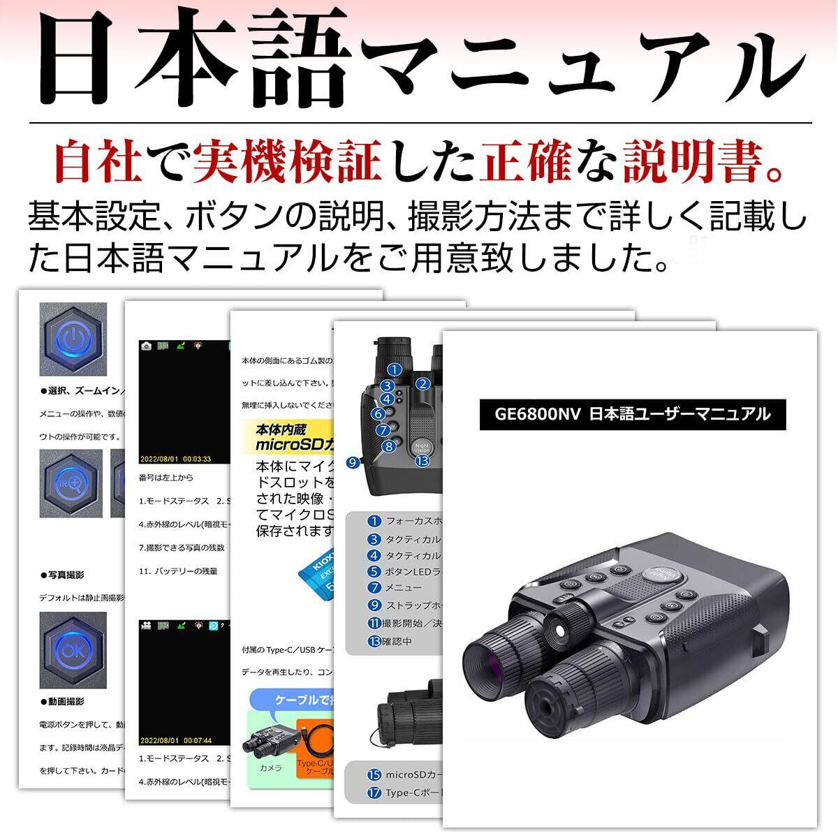 ●マイクロSDカード32GBが標準で付属:【付属品】暗視スコープ本体/32GB microSDカード/Type-C・USBケーブル/ネックストラップ/方角計/日本語マニュアル。 ●日本語マニュアル:自社で実機検証した正確な説明書です。基本設定からボタン操作まで詳しく記載したオリジナルので日本語マニュアルをご用意しました。