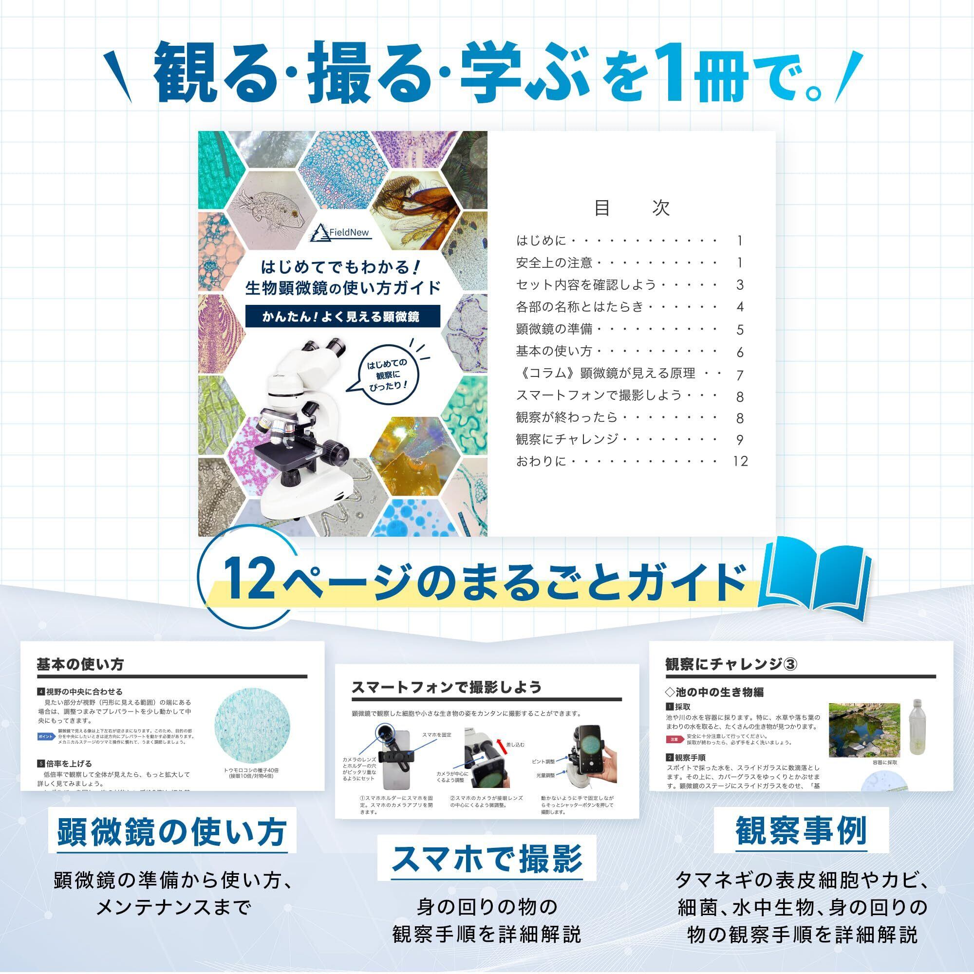 FieldNew 双眼生物顕微鏡|40X-1000X メカニカルステージ 上下LEDライト|小学生 子供用 自由研究 スマホ撮影《国内ブランド/書付》