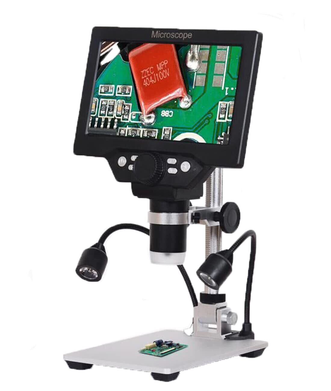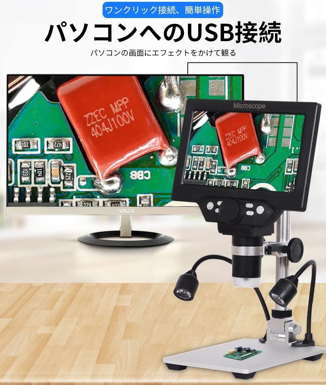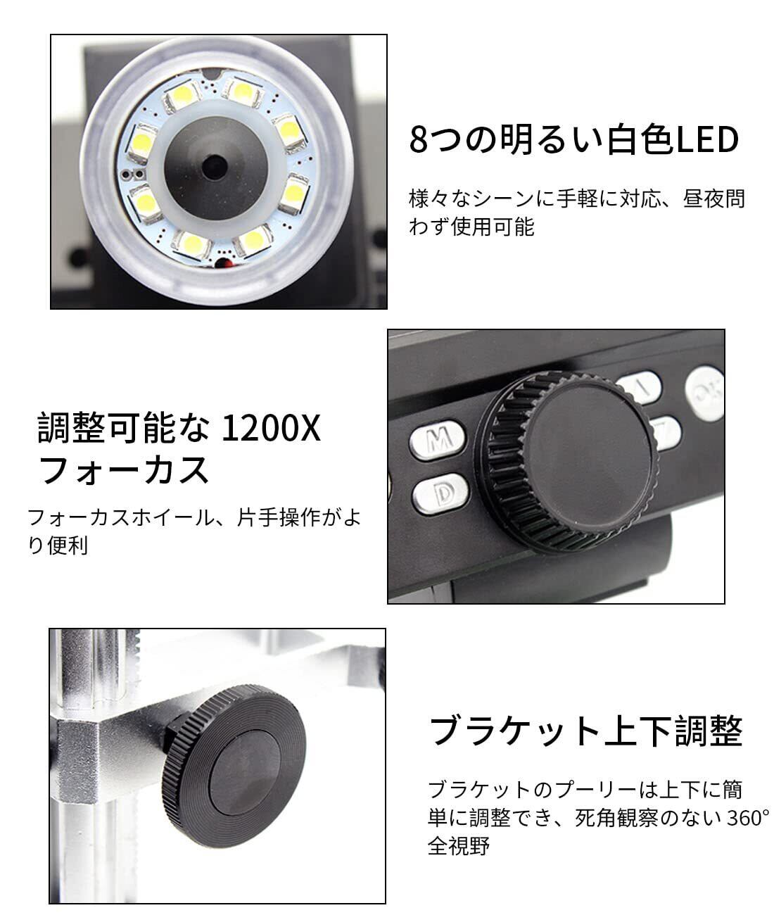 デジタル顕微鏡 マイクロスコープ USB電子顕微鏡 G1200 1-1200X 7インチ LCD 12MP 1080P アルミニウム合金 スタンド付き 8 LEDライト 補助光2個付き 電子スコープ 拡大鏡 バッテリー+曲面ライト付き 電子日本語取扱説明書付き