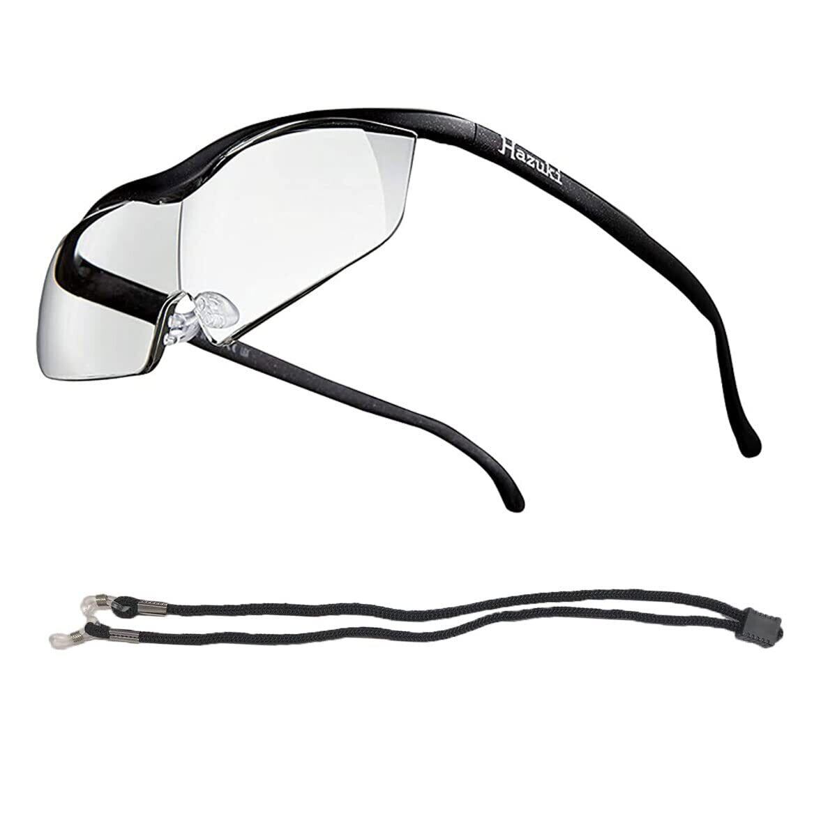 Hazuki ハズキルーペ ラージ 1.85倍 クリアレンズ (全9色) 首から下げるストラップ付き 首掛け付き (黒) 誕生日 プレゼント