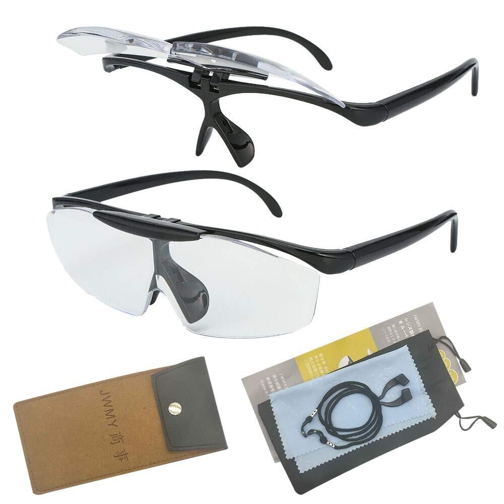 ルーペメガネ メガネ型拡大鏡 メガネの上から掛けられる はっきり見える 大きく見える レンズ跳ね上げ機能付き 両手が使えるルーペ 父の日 敬老の日 プレゼント7点セット 日本語説明書付き (ブラック)