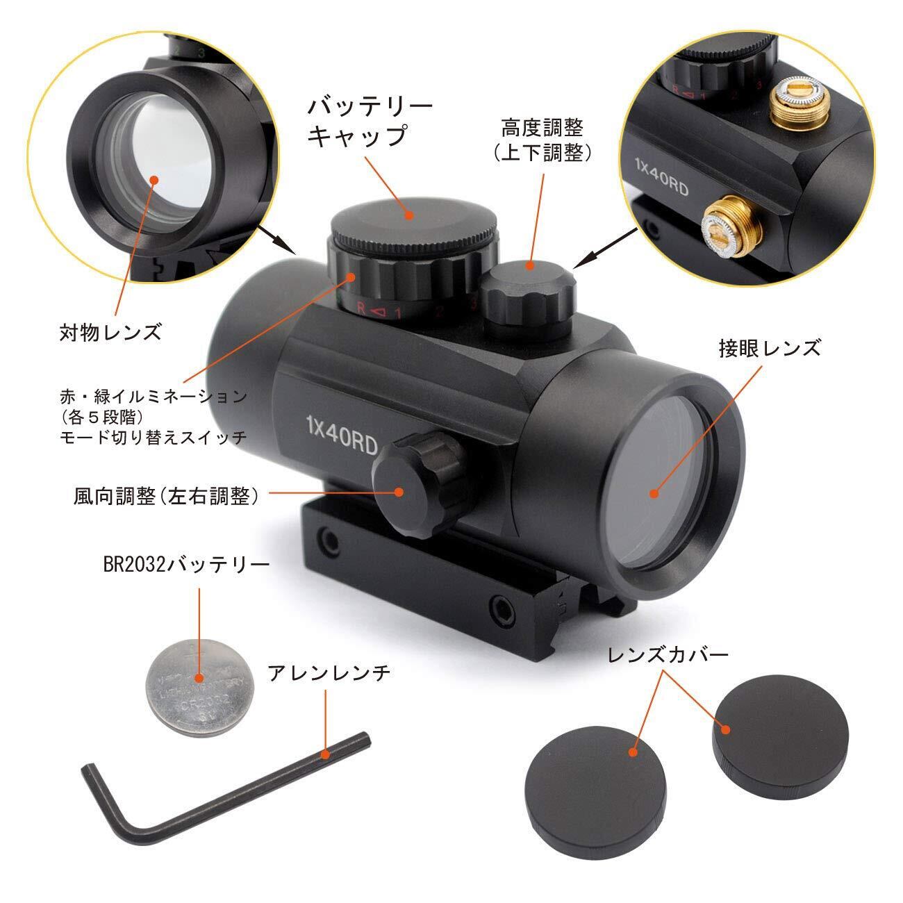 Trirock レッド/グリーンドットサイト1×40RD 20mm/10mmレールマウント対応光学照準器 レッド/グリーン各5段階調整可能 (旧版)