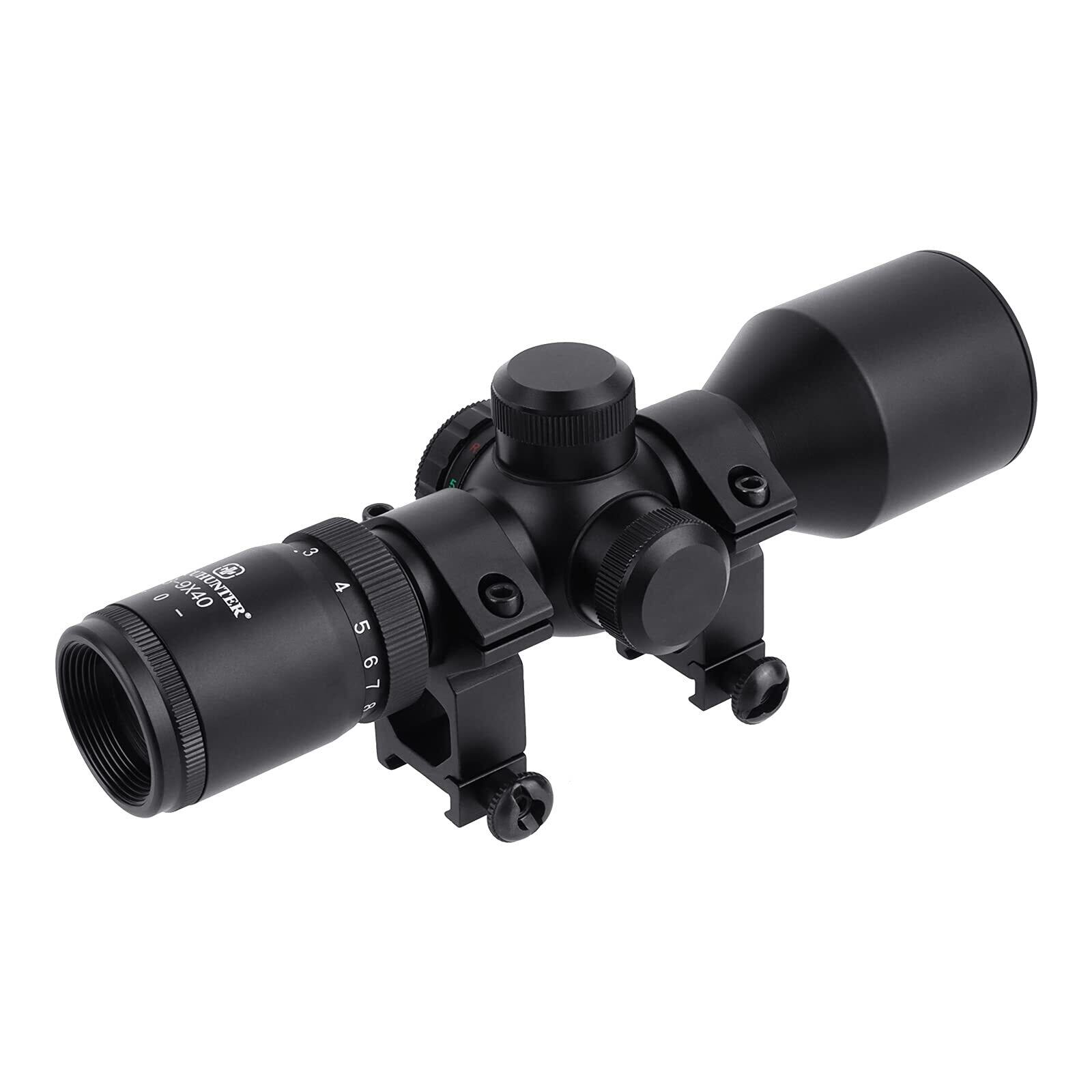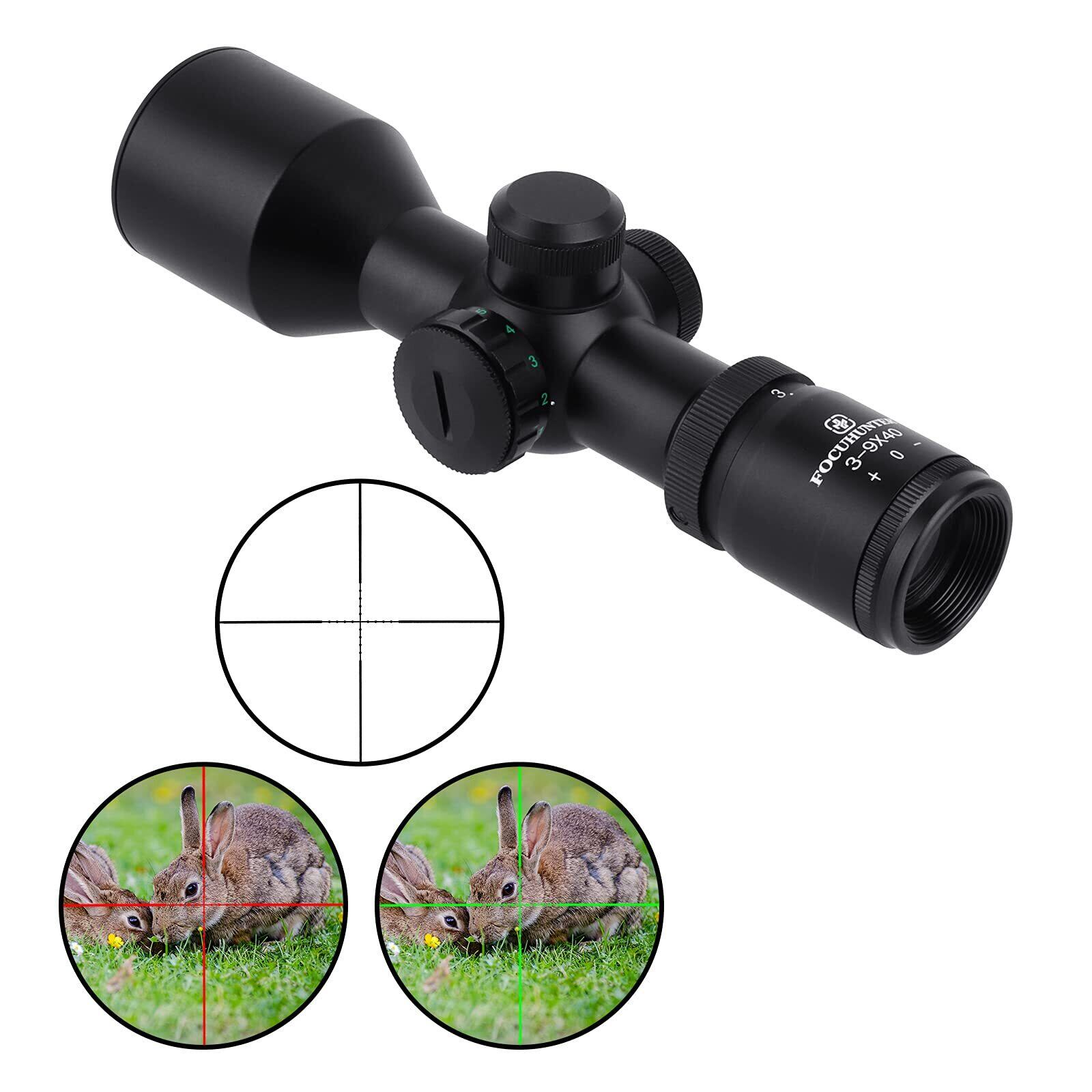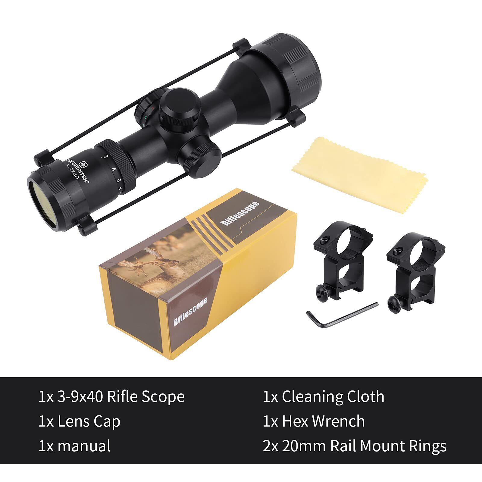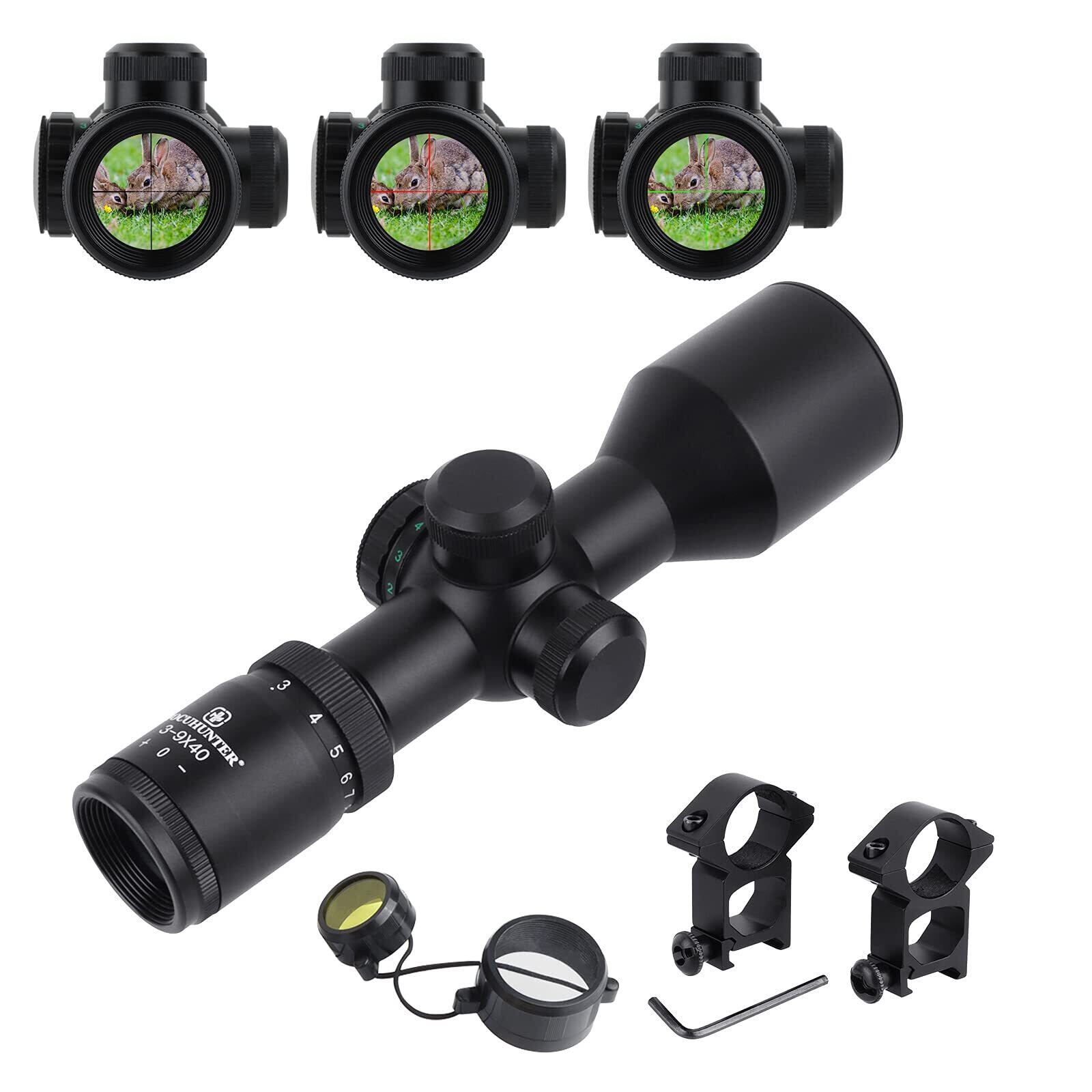 FOCUHUNTER 3-9x40Eスコープ 赤緑照明式レチクル コンパクト オプティカルサイト 20mmウィーバー/ピカティニーマウントリング レンズカバー付属 アウトドアスポーツ
