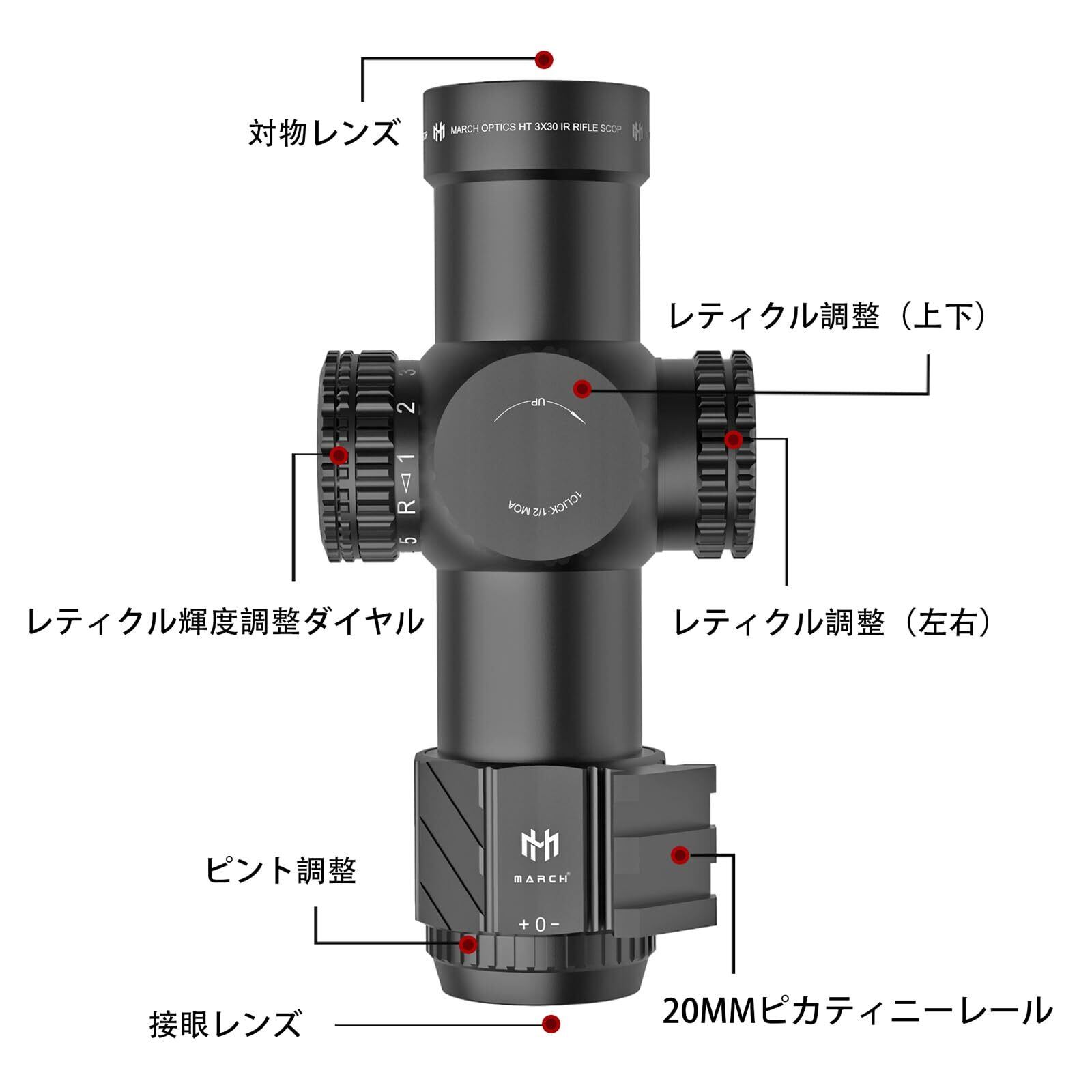 3x30IRライフルスコープ ショートスコープ 3倍固定倍率照準器 20mmレールマウント付き