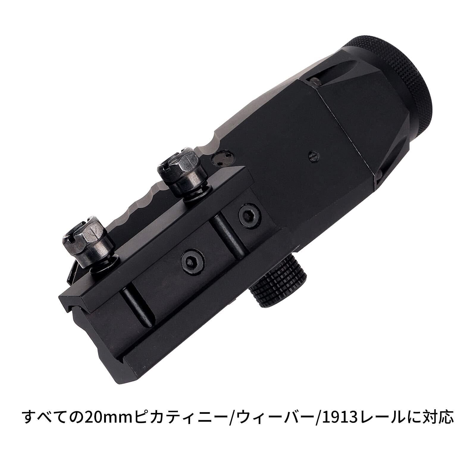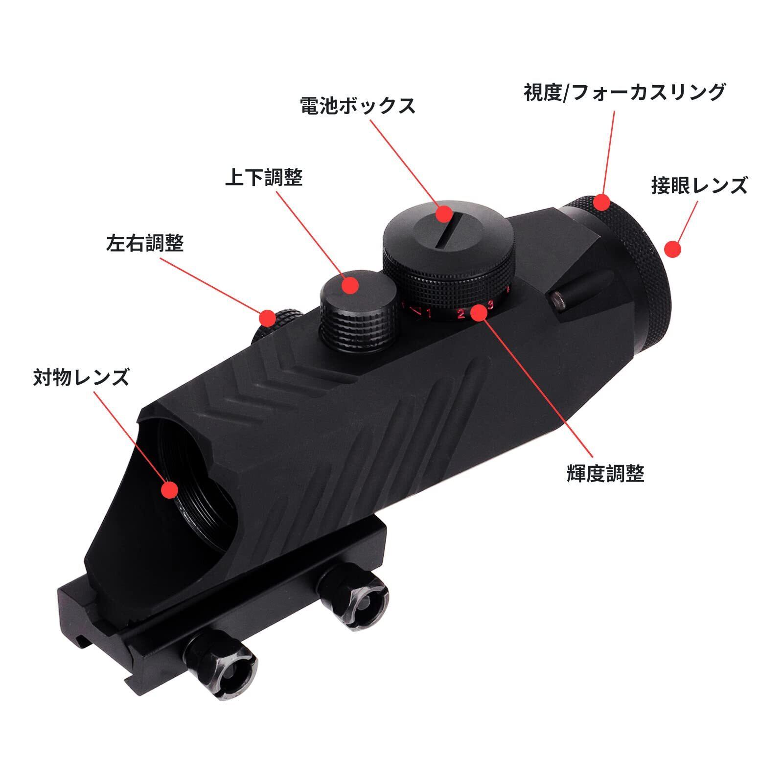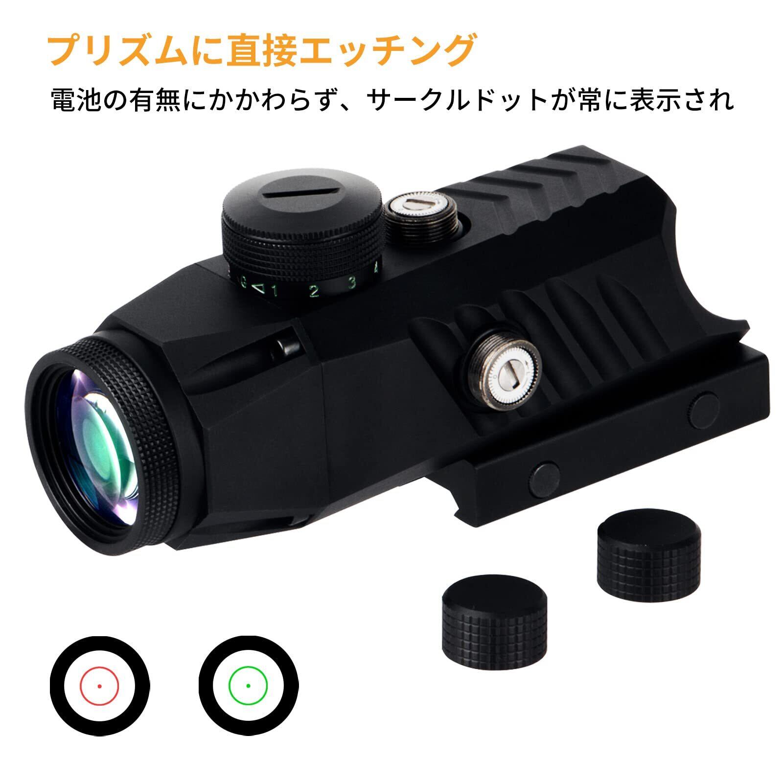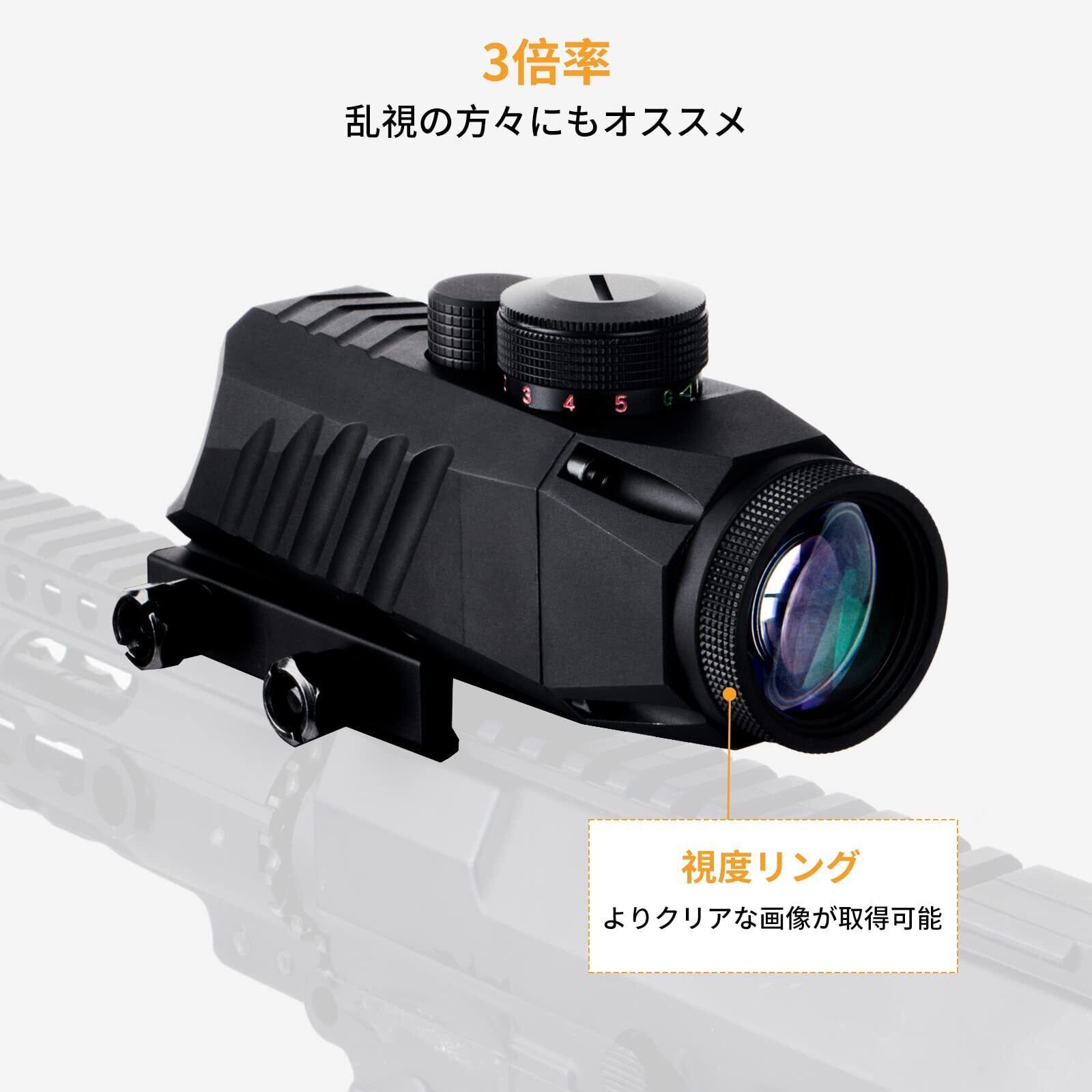 1. 3倍倍率式のドットサイト:3倍の倍率タイプのドットサイト、拡大鏡の搭載は不要、近視乱視の方々へおすすめ。照明式サークルドットレティクル。黒のレチクルは常に表示されています。赤緑レティクルは各5段階輝度調整可能。重さ:477g(普通のドットサイトより重いのです。予めご了承ください)
