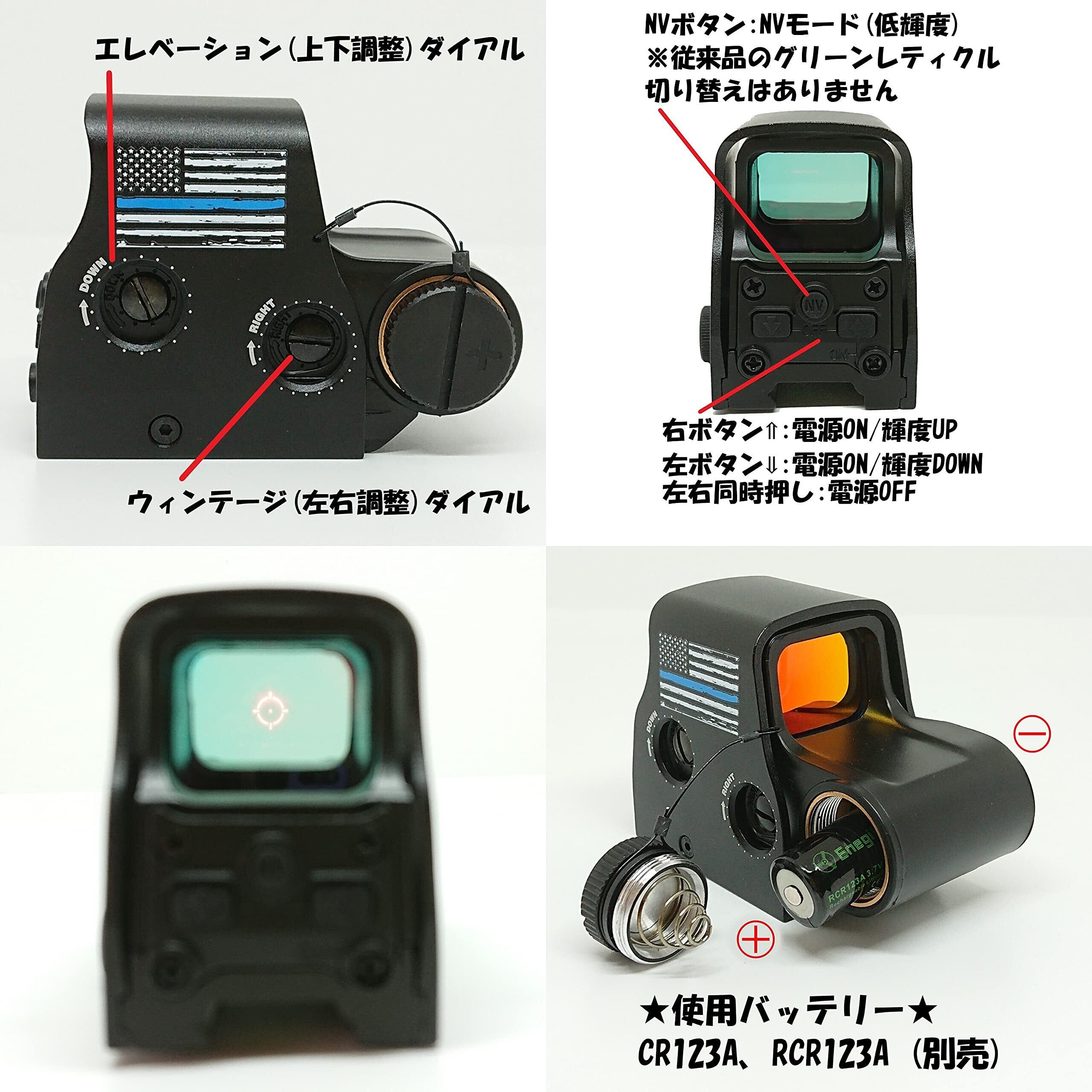 明るいレンズ 556 USフラッグ タイプ レプリカ ドットサイト ダットサイト EXPS3 ホロサイト 556F (BK)