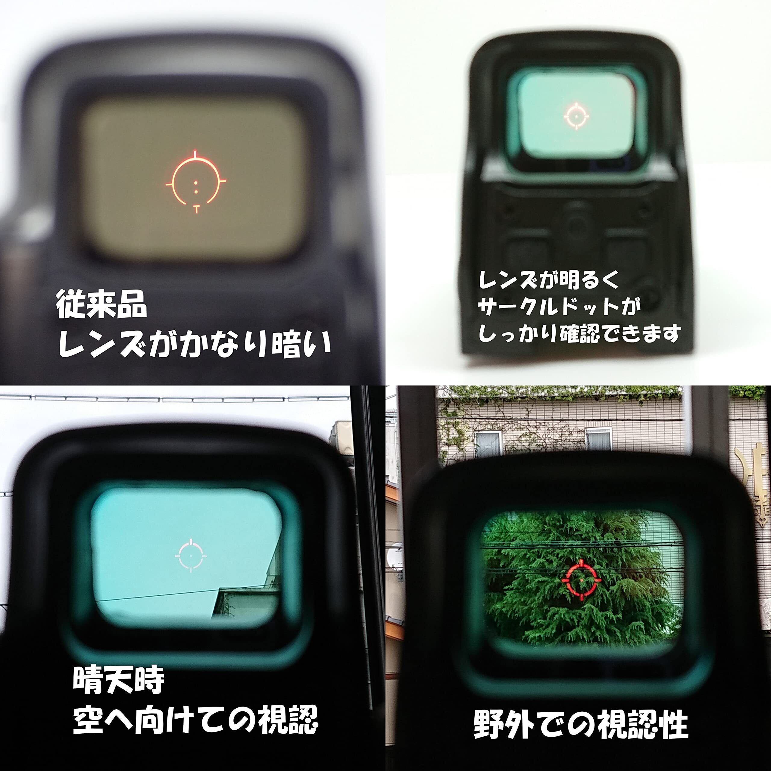 ◆レンズが暗くない◆ 最新改良レンズは従来品の暗く映り込みの強かったミラーコートの対物レンズをルビーコートに完全変更! 日向から日陰にエイミングした時のとても強い映り込みがなくなりました。(従来品のグリーンレティクル切り替えはありません)