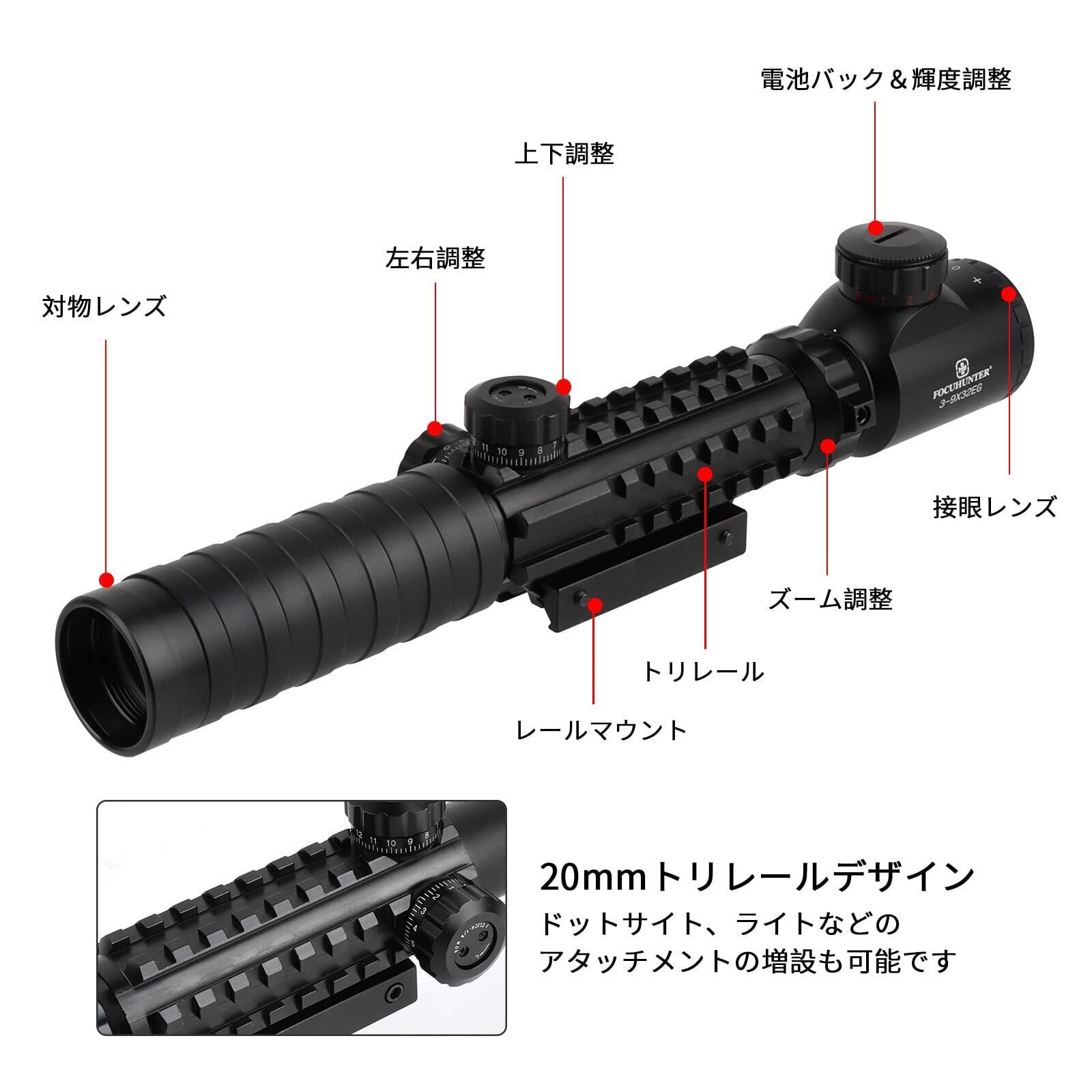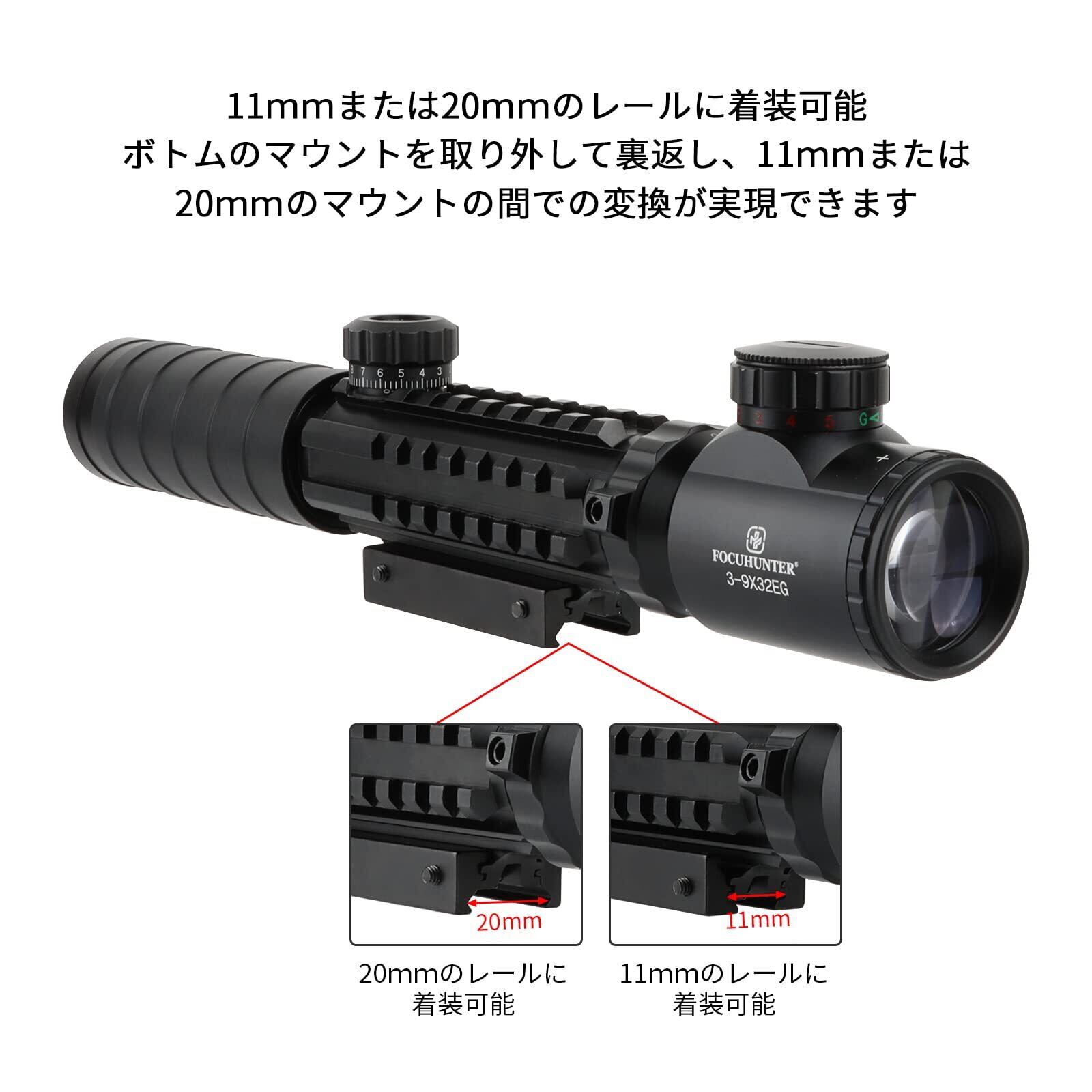 FOCUHUNTER スコープ タクティカルスコープ 3-9x32赤と緑の照明付き光学スコープ レンズキャップセット 20 mm 11 mmトライピカティニーレール付き