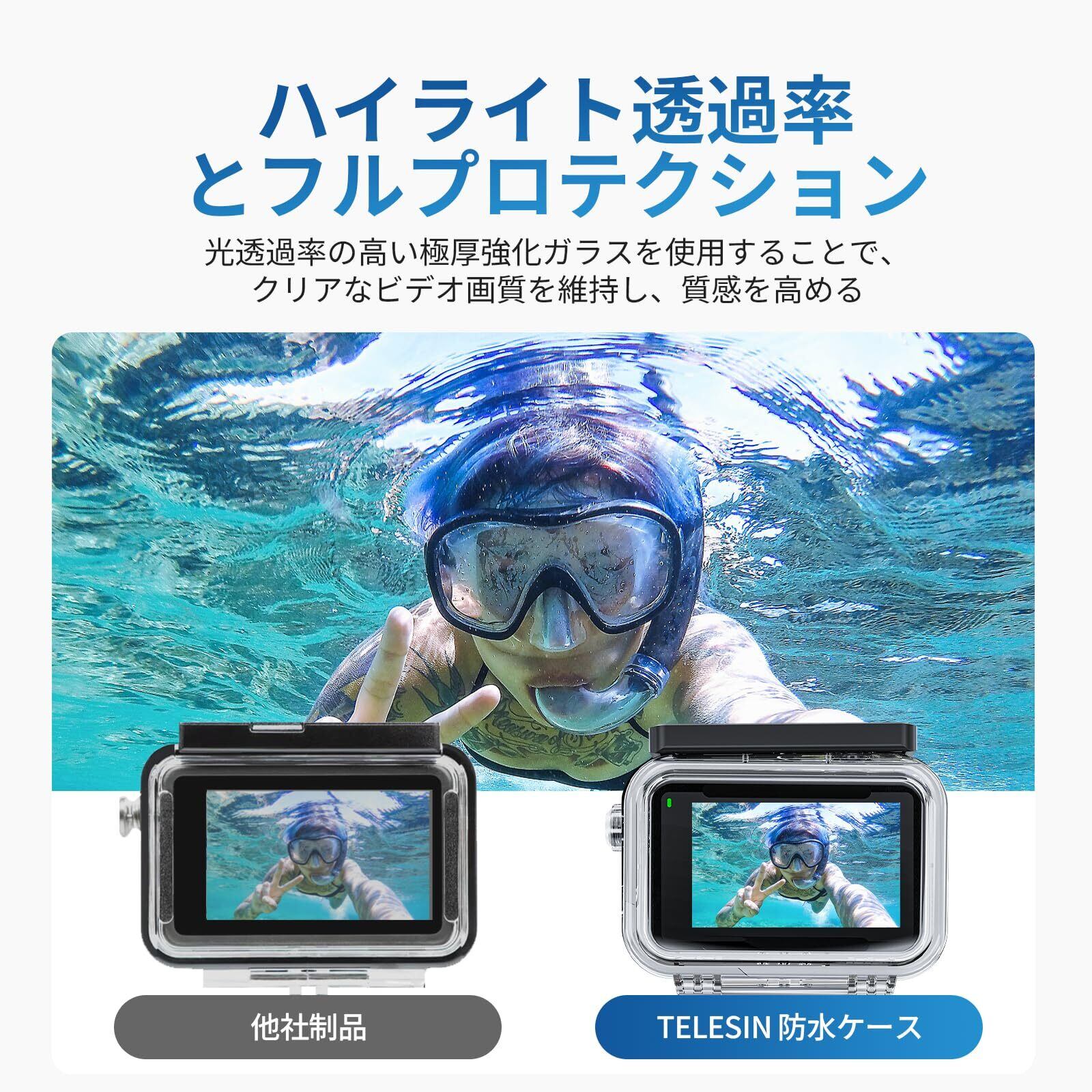 TELESIN DJI Osmo Action 5 Pro/Osmo Action 4/Osmo Action 3用 防水ケース 60M/196FT防水ハウジング 水中撮影 防水ハウジングケース ダイブハウジング 水深ダイビング 防水防塵保護ハウジング ダイビング保護シェル 耐圧性 落下防止 取付け簡単 DJI Osmo Action 5 Pro/4/3 用 アクセサリー