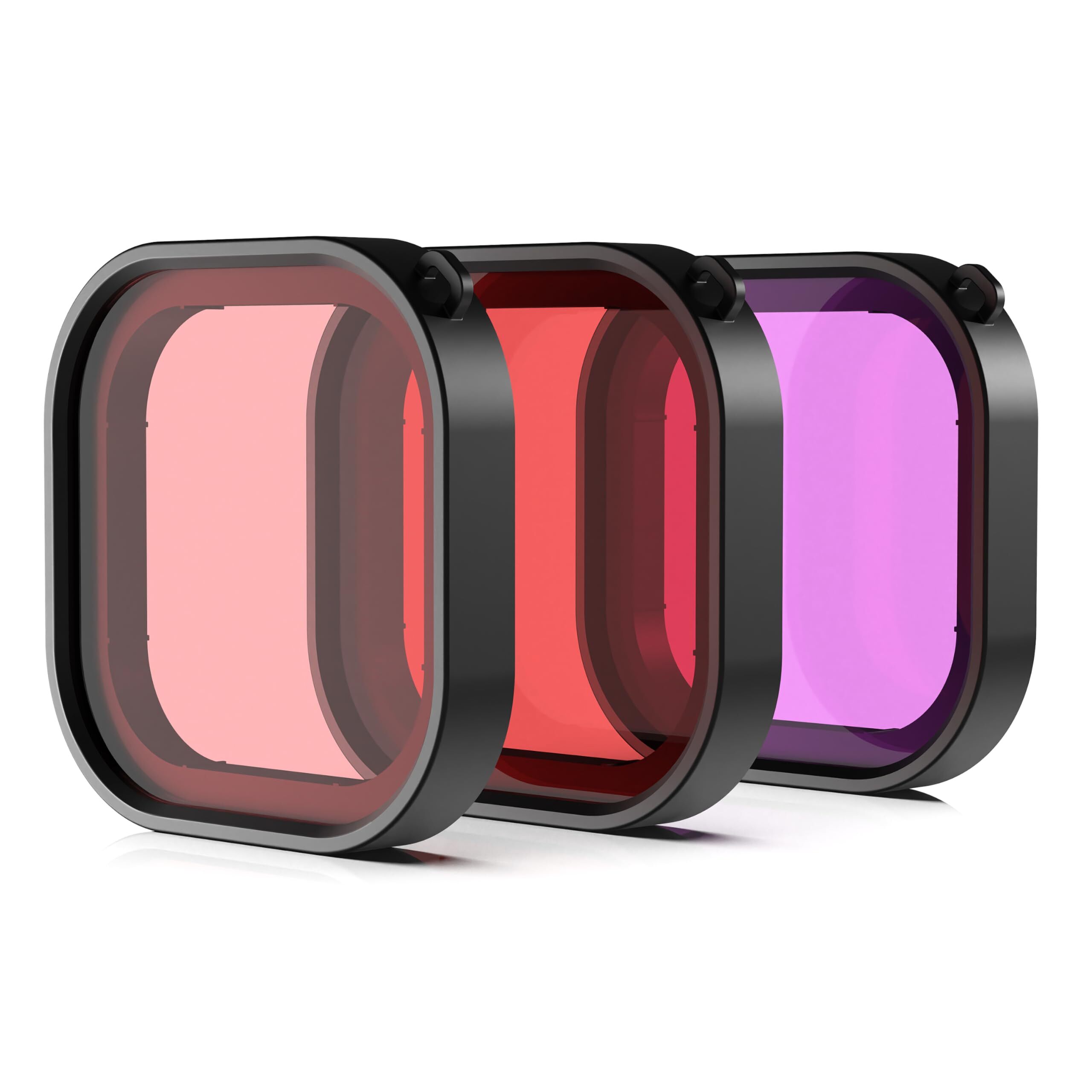 【対応機種】この3色ダイブフィルターは、GoPro Hero 13/12/11/10/9 公式ブラック防水ハウジングおよびFiTSTILL Hero 13/12/11/10/9 専用アルミ合金防水ブラックハウジングにのみ対応しています。(注:このフィルターは、カメラレンズ、サードパーティ製ハウジング、またはその他のハウジングモデルには直接使用できません。ニーズに合わせて互換性のあるハウジングをご購入ください。)