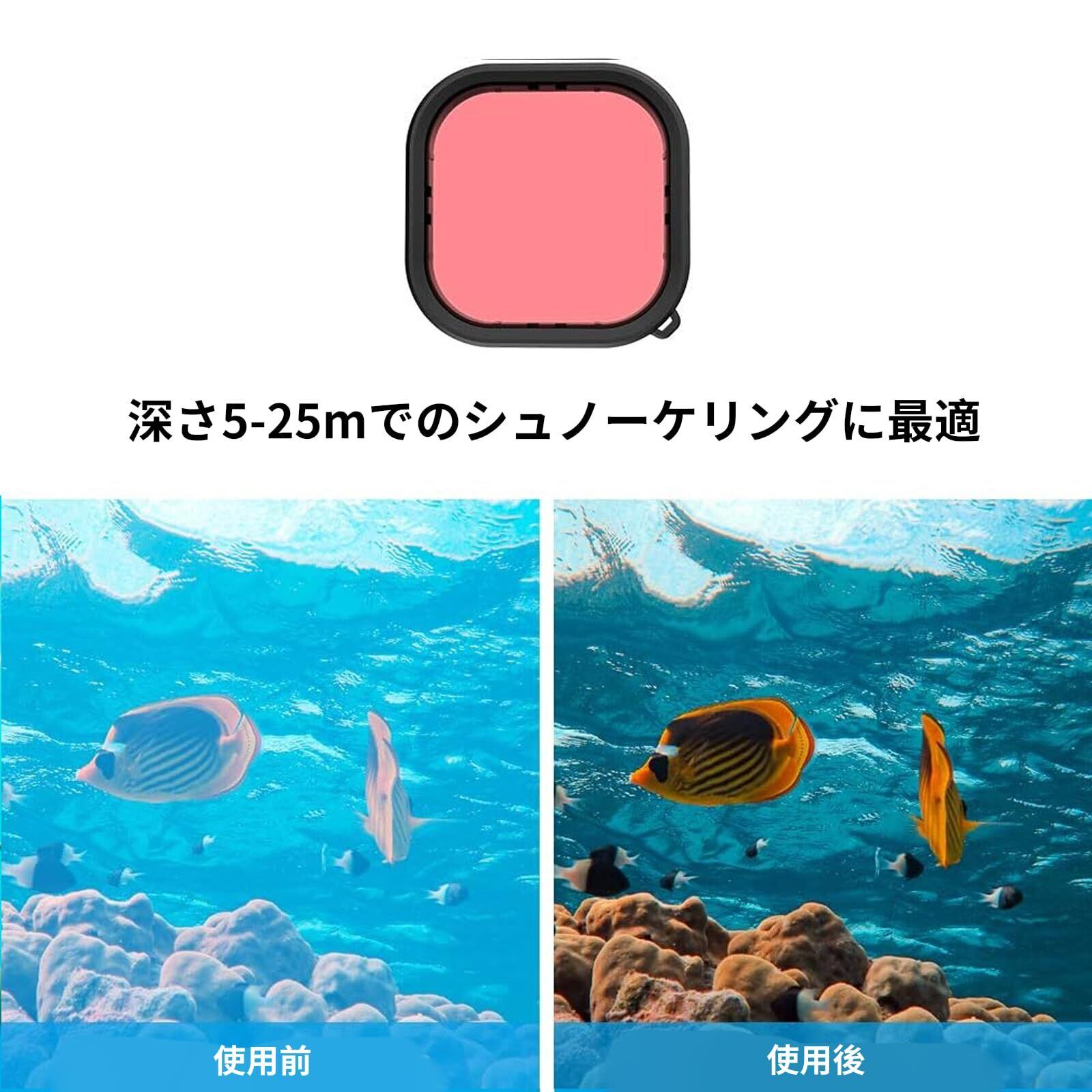ライトレッド(シュノーケル)フィルター:シュノーケルフィルターは、2〜15フィートの浅い深さの青い水または澄んだ淡水の色補正用に設計されています。