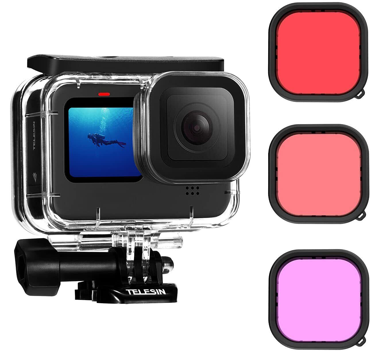 TELESIN GoPro 用 防水ハウジングケース + 3種類の色 フィルター GoPro Hero 13 Hero 12 Hero 11 mini 10 9 用 60m 水深ダイビング 防水防塵保護ハウジング ダイビング保護シェル 水中用の写真 アクセサリー