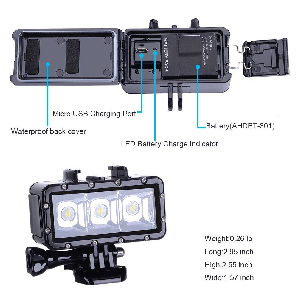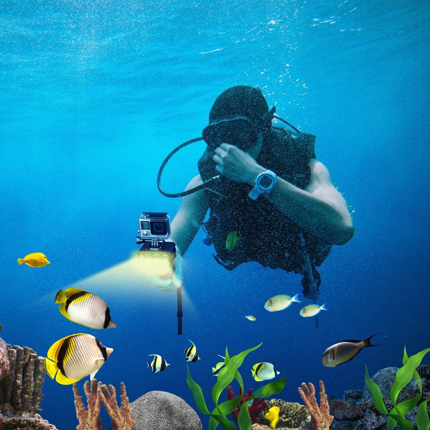 素晴らしい体験と素晴らしい製品 この水中ライトを愛し、夜間の使用や水中での使用にかかわらず、非常に適しています。 互換性があります For GoPro Hero 9/Hero 8/Hero 7/Hero6/5 4Session/4/ 3+/ 3、およびXiaoYi SJCAM用。
