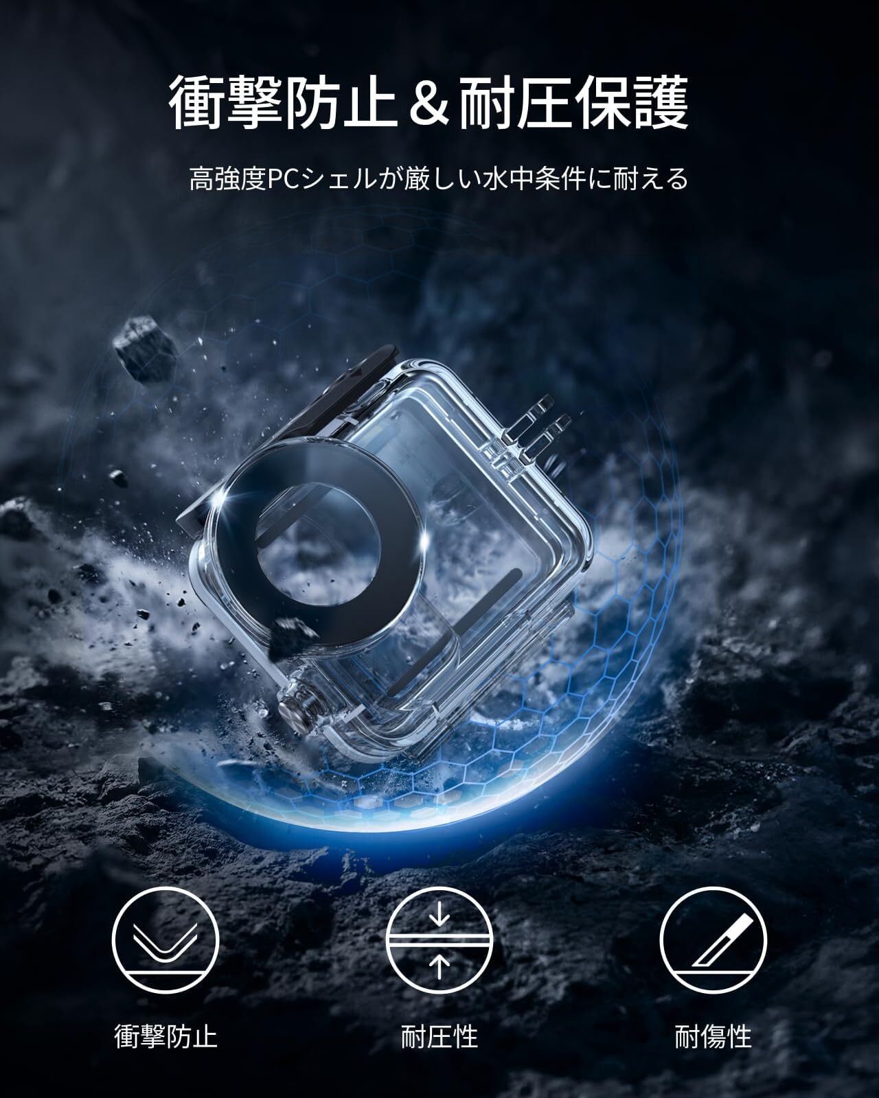 【高硬度PC外装】 高硬度PC素材を採用したボディは、落下や水中での衝撃、砂・小石からカメラ本体をしっかり保護。過酷な環境でも信頼できるDJI Nano 防水防塵保護ハウジングとして、サーフィン・スキー・ビーチ・ウォーターパークなど幅広いシーンで活躍します