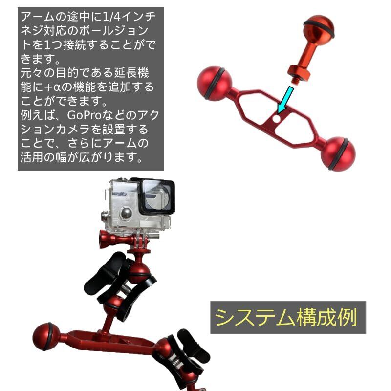 アームの途中でボールを接続することで、さらに延長してアタッチメントをつけることができます。