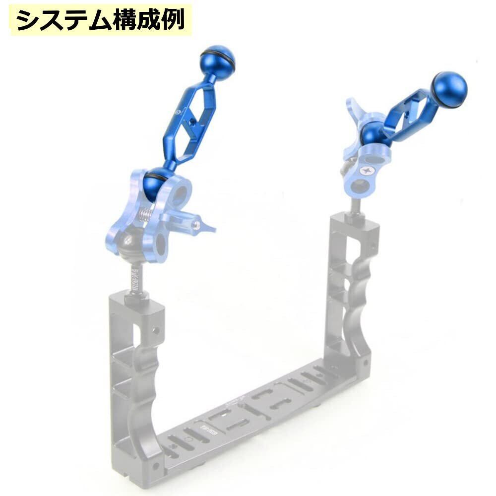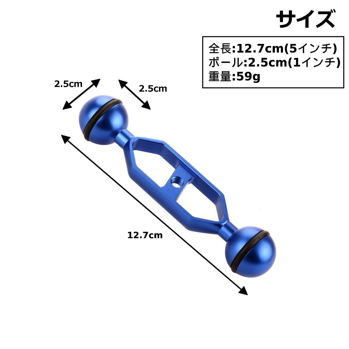 アーム ボールジョイント 軽量 アルミ 水中カメラ ダイビング グリップベースシステム マルチトレーシステム ストロボ ライト 防水 耐腐食 (12.7cm(5インチ), ブルー)