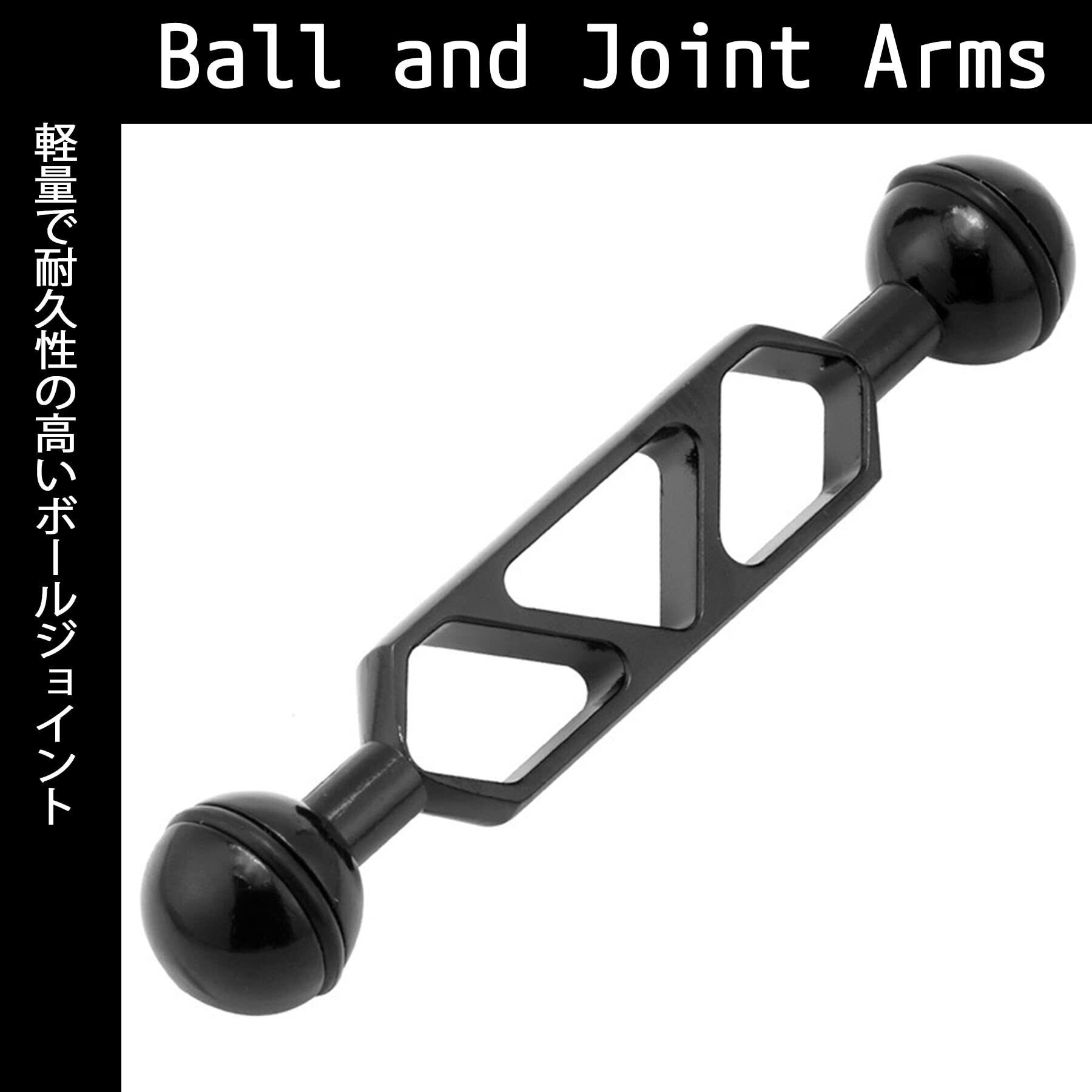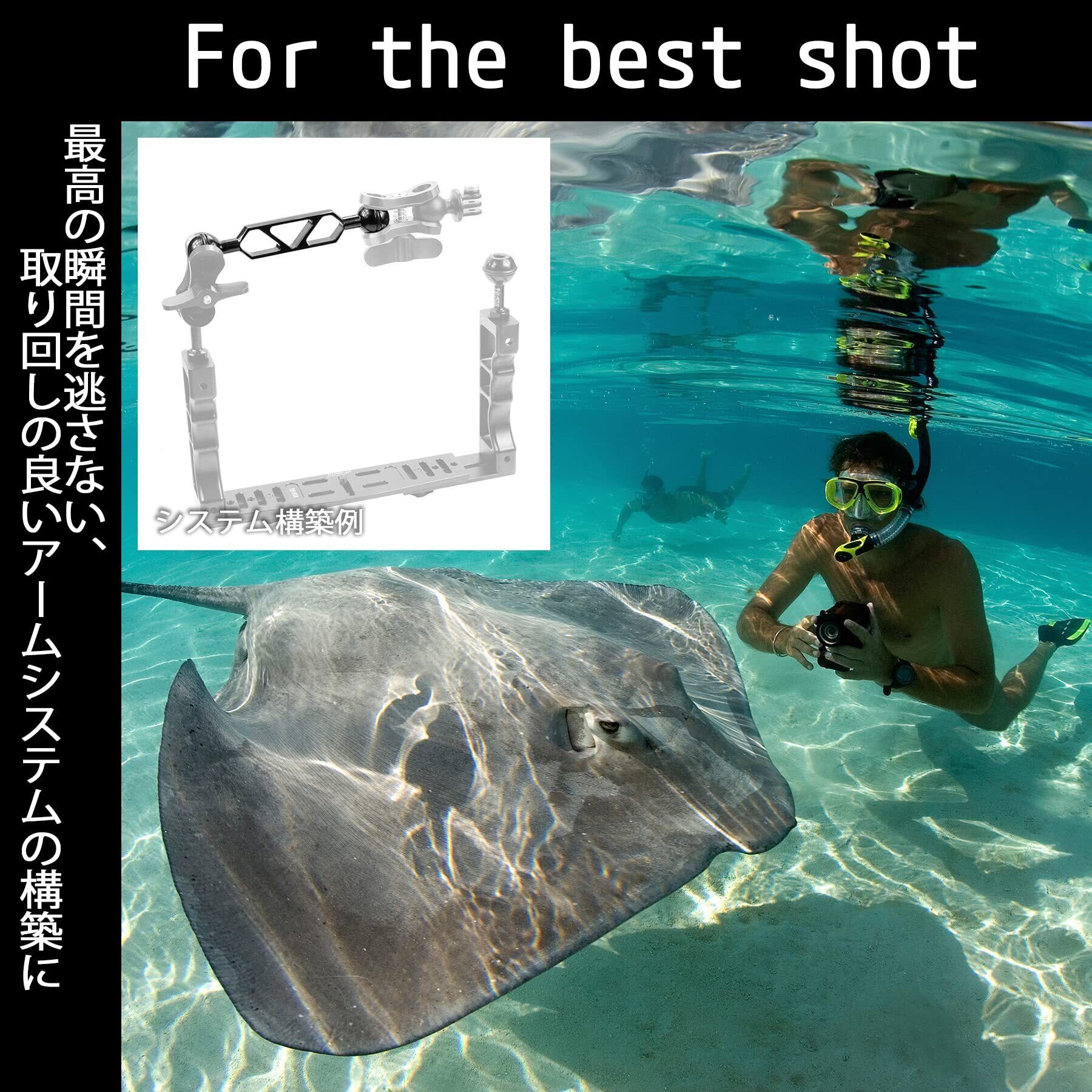 水中カメラ用ハウジングにストロボやライトの取り付けに使用するスタンダードなボールジョイントアームです。スタンダードなデザインで軽量コンパクトなので、初めてアームシステムを構築する人にもおススメです。