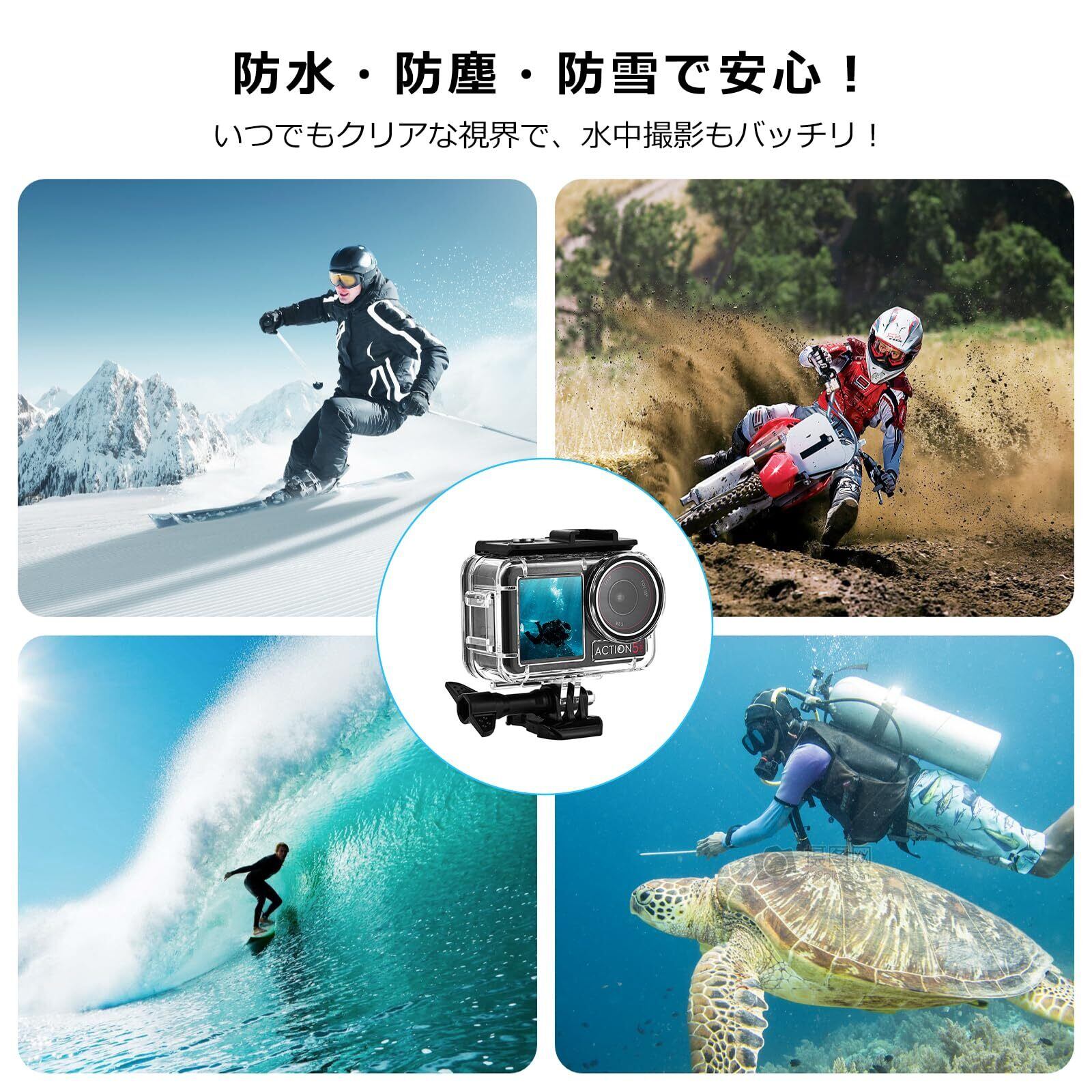 【水中カメラ用 防水ハウジングケース】この製品はDJIマウントとして、osmo action 5 pro、osmo action 4 /osmo action 3に対応した専用設計の防水ケースです。高い密閉性で、ダイビング、サーフィン、スキー、水泳、シュノ-ゲリング、ラフティング、水中撮影などのウォータースポーツやアウトドアシーン中でも、水中カメラをしっかりと保護し、貴重な瞬間を美しく捉えます