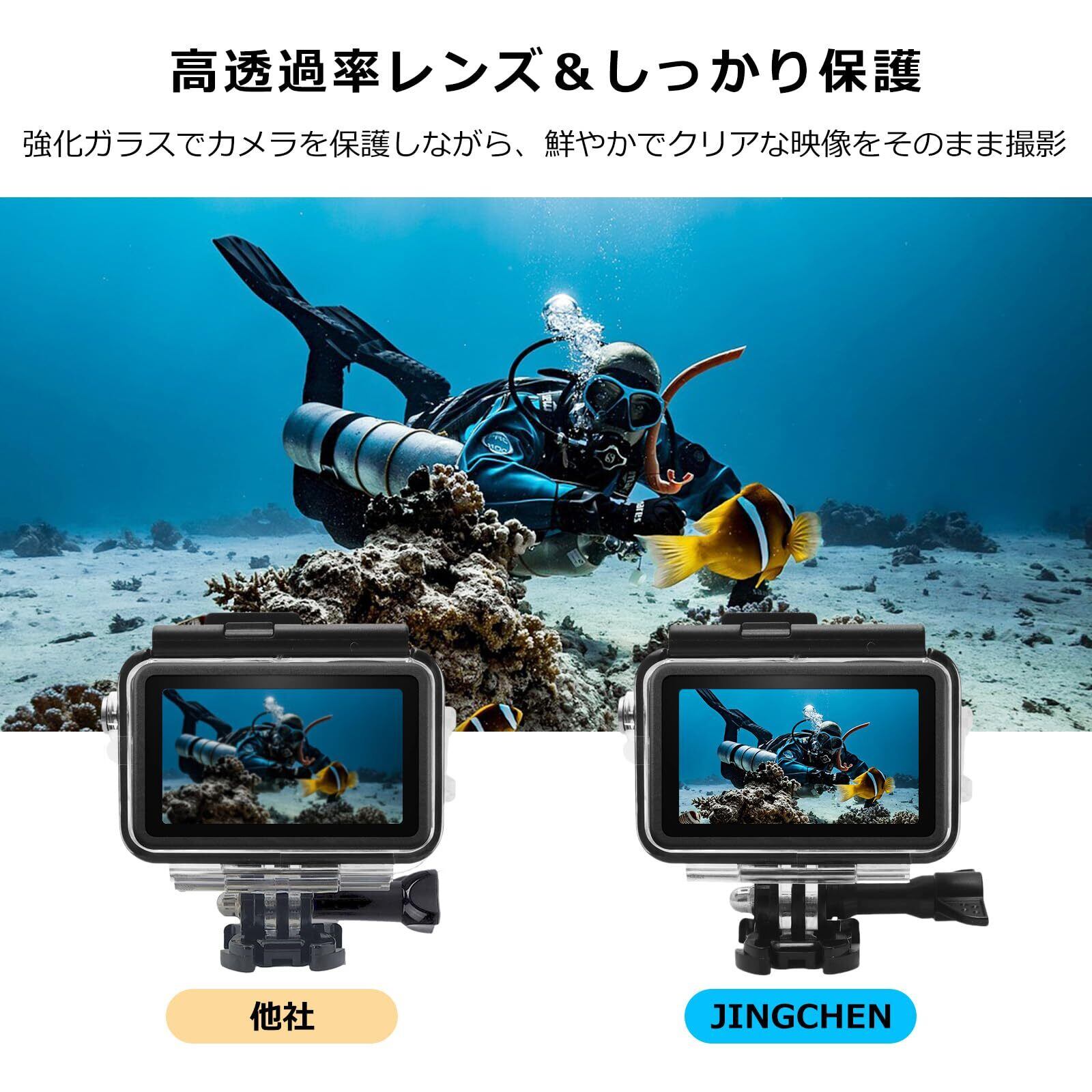 JINGCHEN dji osmo action 5 pro/dji osmo action 4/dji osmo action 3 防水ケース 、防水ハウジングケース 水中撮影 保護ケース 60m水深ダイビング 防塵 防水ハウジング 保護ハウジング 水中ダイビングケースシェル ダブルコールドシューデザイン 潜水ケース ダイビング保護カバー DJI Osmo Action アクセサリー